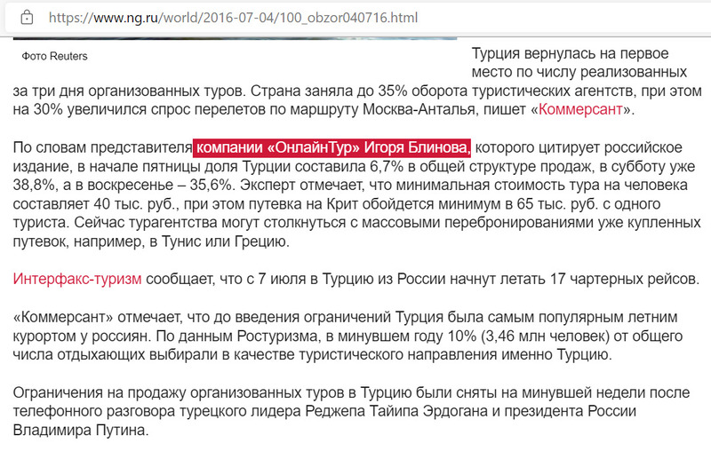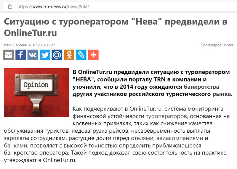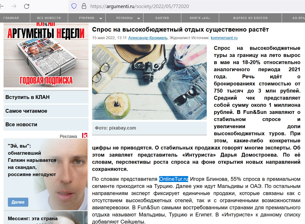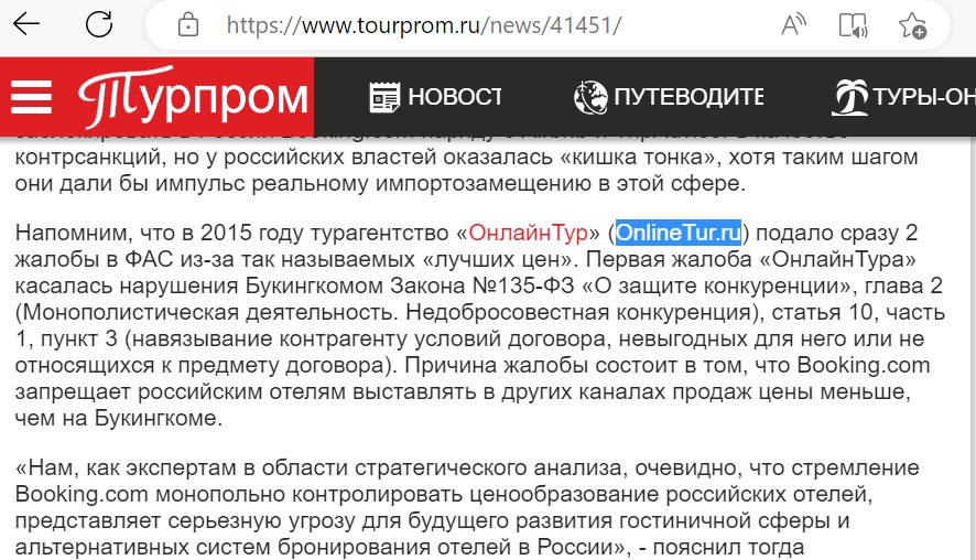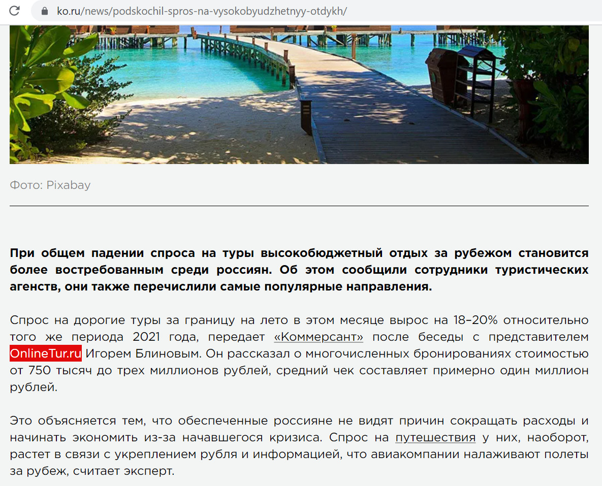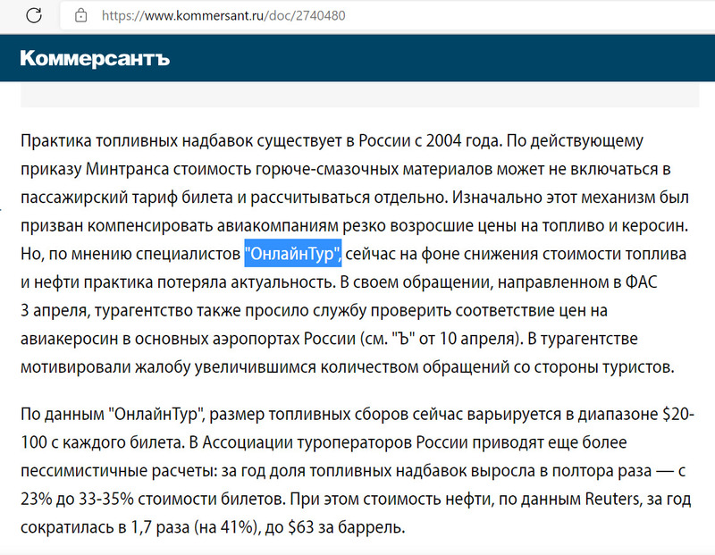 Цитируемость OnlineTur.ru в СМИ за 10 лет с 2014 по 2025 год: Коммерсант, РБК, Россия 24, Бизнес ФМ, Вести 24, Россия 1, Ведомости, Известия, Forbes, ПРАЙМ, НТВ, Рен ТВ, Москва FM, Радио России, Вечерняя Москва, News-Life, РИА Новости, Sputnik, Lenta.Ru, Business FM, Общественное телевидение России, Телеканал 360, Московский Комсомолец, Live24.ru, RT, Москва 24, Комсомольская правда, РБК ТВ, Вести ФМ, ТАСС, Российская газета, Газета.Ru, Национальная служба новостей и другие.