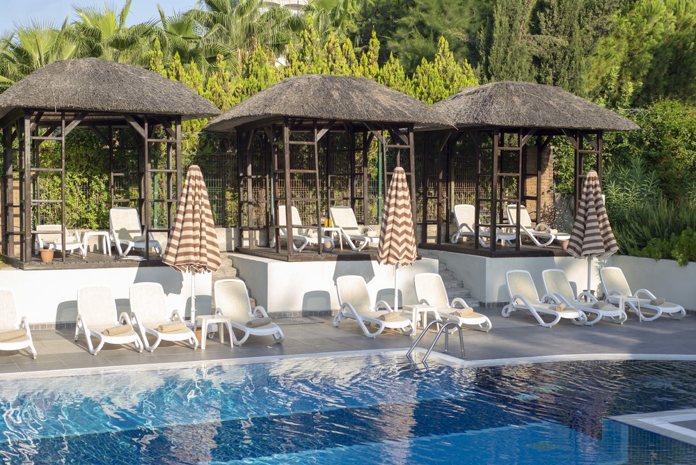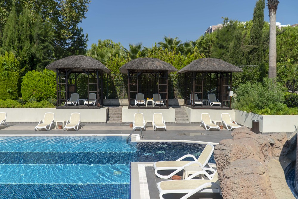 - Общее количество бассейновчетыре. Три открытых (работают только летом), один крытый (с подогревом, работает только в зимний сезон)