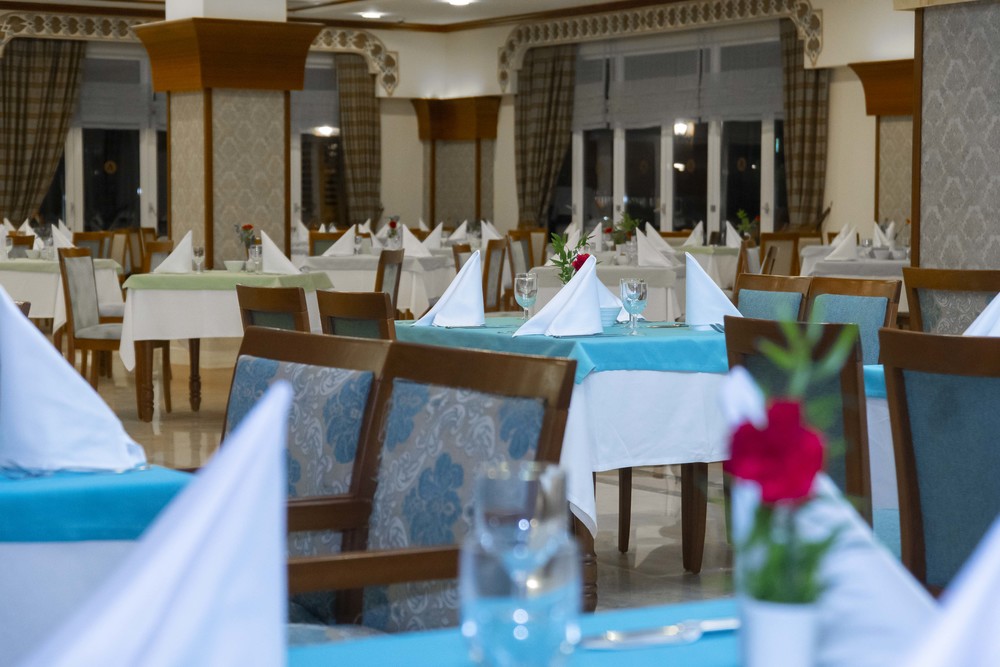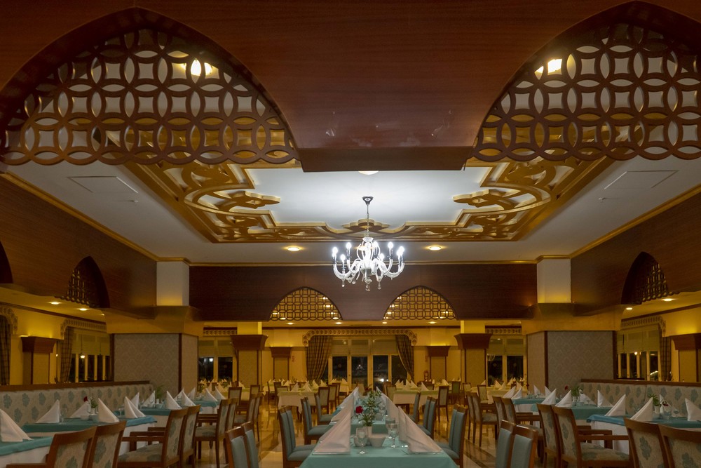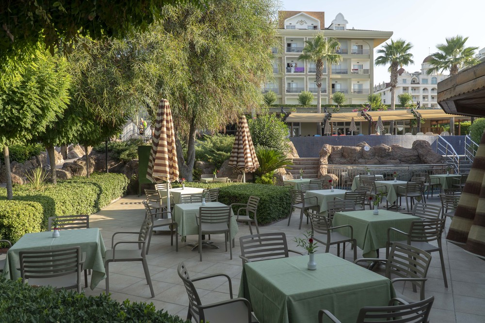 - РестораныГлавный - шведский столTugra (с 19:00 до 21:00) - a la carte, турецкая кухняItalian (19:00 до 21:00) - a la carte, итальянская кухняFish (с 01.06 до 15.10 с 19:00 до 21:00) - a la carte, рыбныйSteak House (платно)Внимание! Посещение ресторана a`la carte возможно по предварительному бронированию, 1 раз за весь период проживания при бронировании от 7 ночей и более - бесплатно (кроме Steak House), далее платно.