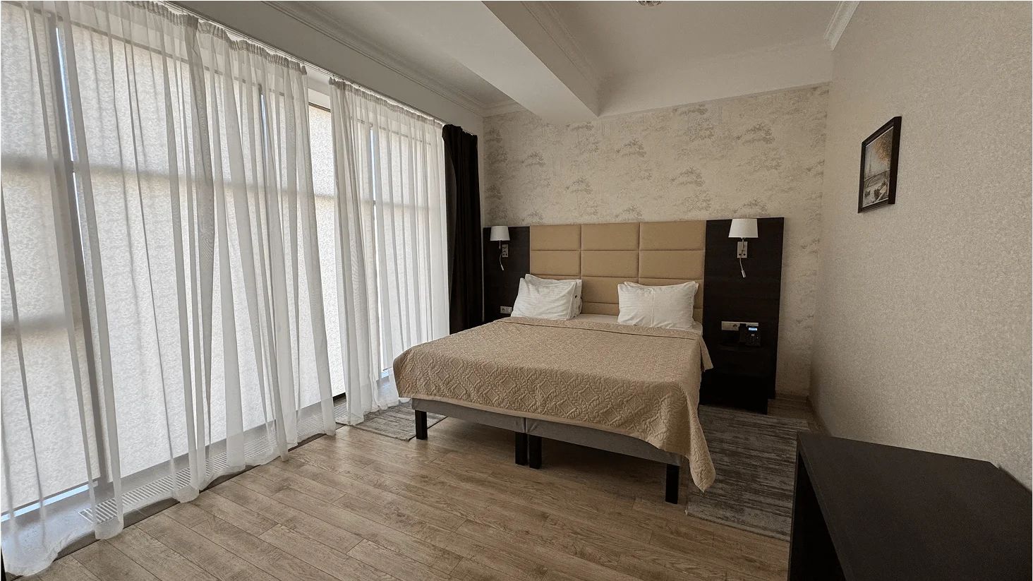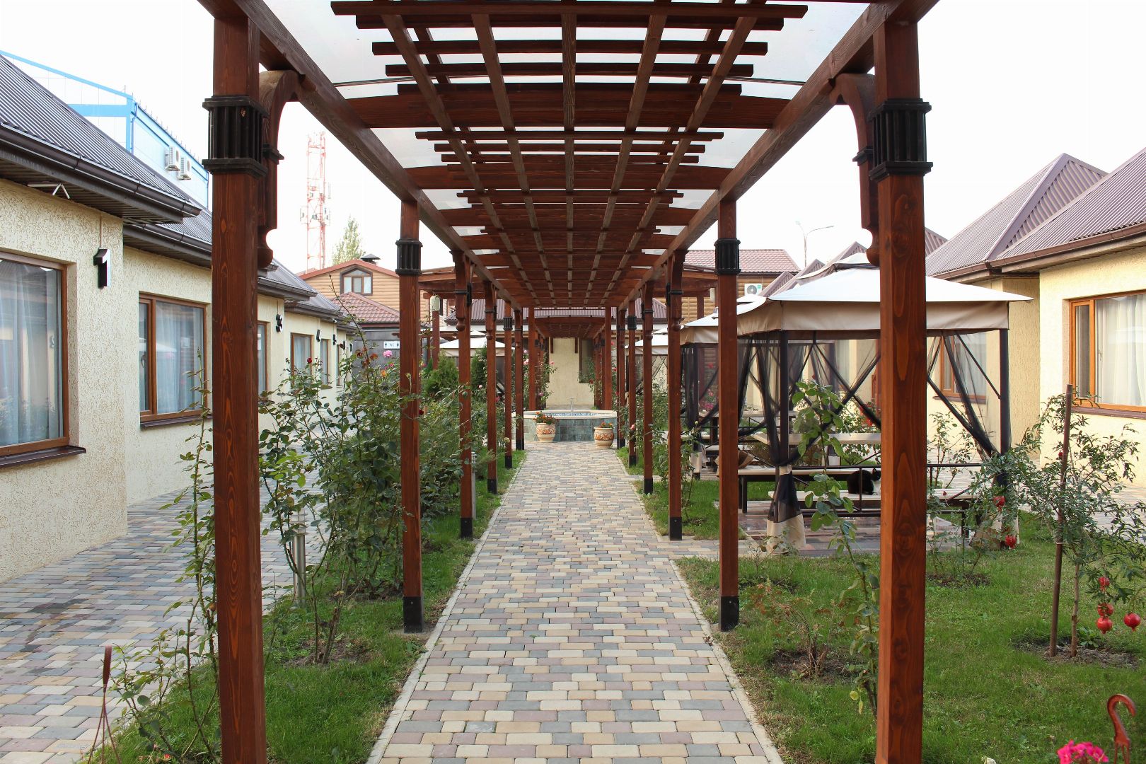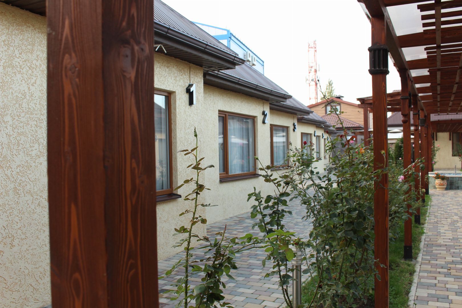 Количество зданий:1 главный корпус (7 этажей; 1 лифт; 32 номера), 1 дополнительный корпус (2 этажа; лифта нет; 5 номеров)