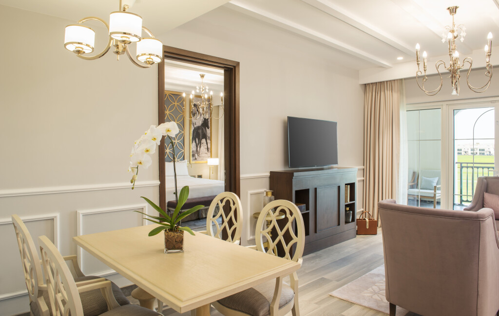 Описание номеров Al Habtoor Polo Resort 5*:На курорте имеется 126 номеров, включая 28 люксов и 10 вилл с видом на зелёный пейзаж полей для игры в поло.