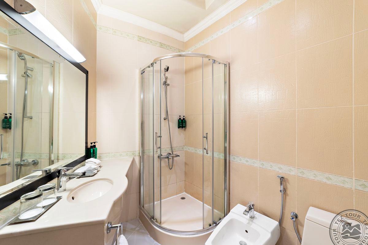 Номер:> сейф: есть утюг: есть халат банные принадлежности электрический чайник телевизор: есть тапочки фен: есть кондиционер: есть мини-бар ванна или душ room service: круглосуточно балкон или терраса (не во всех номерах) гладильная доска: есть телефон набор для приготовления чая/кофе Интернет: Wi-Fi, бесплатно