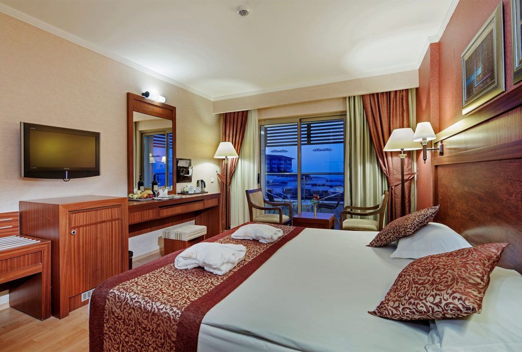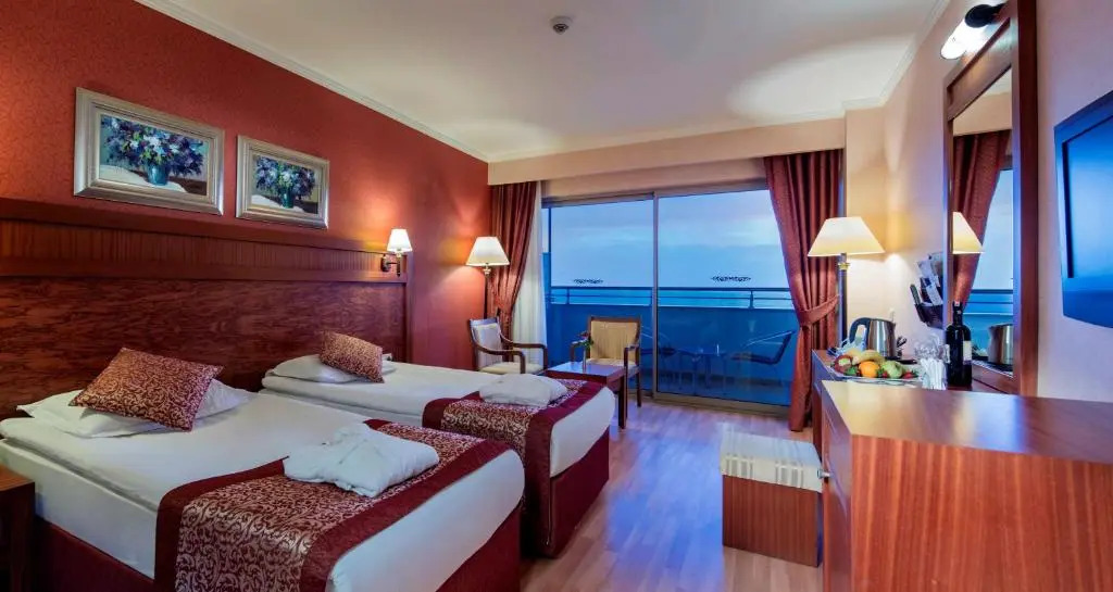 Особенности курорта.:Это отель типа ""все включено"". Еда и напитки в местных ресторанах и барах, налоги и чаевые входят в стоимость номера. Дополнительная плата может взиматься за питание в некоторых ресторанах, специальные обеды и блюда, за определенные напитки и другие услуги. Курорт в городе Чолакли с частным пляжем. Курорт предлагает бесплатный завтрак. В отеле имеются места отдыха и развлечений: открытый бассейн, закрытый бассейн, оздоровительный клуб, спа-ванна и сауна. В отеле находится спа-центр, где предлагается полный спектр услуг, в частности массажно-процедурные кабинеты. В этом 5-звездном отеле имеется бизнес-центр и предлагается следующее: конференц-залы (для небольших групп). Бесплатный беспроводной доступ в Интернет в зонах общественного пользования. В этом отеле в городе Чолакли имеется пространство для проведения встреч и конференций; предлагается следующее: конференц-залы и банкетный зал. Предусмотрена бесплатная парковка для гостей. Дополнительные услуги отеля включают следующее: стойка консьержа, фитнес-центр и комната игровых автоматов.; **Номера. **; В кондиционируемых номерах отеля Alba Royal Hotel есть минибар и сейфы. Во всех номерах имеются балконы. В ванных комнатах есть совмещенные душ и ванна, бесплатные туалетные принадлежности, а также фен. Бесплатно предоставляется беспроводной доступ в Интернет. В номерах предоставляются стол и телефон с прямым набором номера. В каждом номере есть проекционные ТВ-панели с возможностью просмотра спутниковых каналов. По запросу предоставляется: вечерняя уборка номера перед сном; обслуживание номеров выполняется ежедневно.