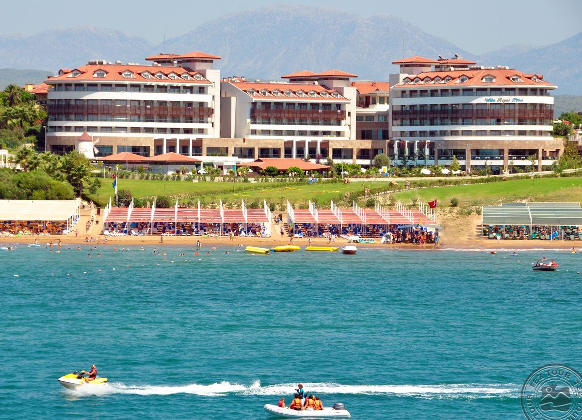 в 55 км от аэропорта г. Анталья, в 8 км от центра г. Сиде, на берегу моря.