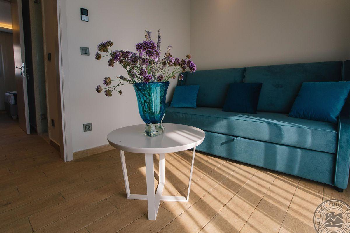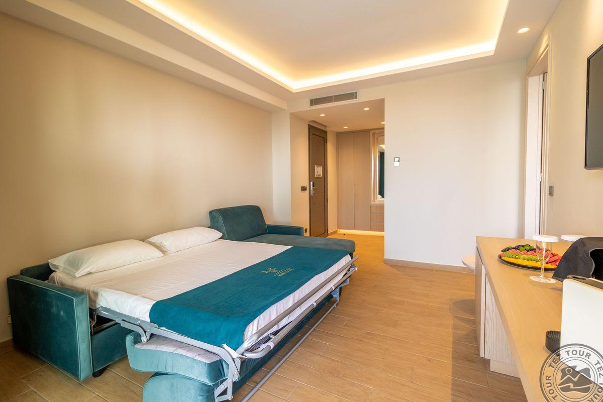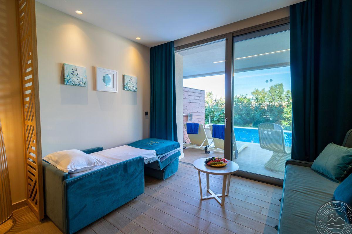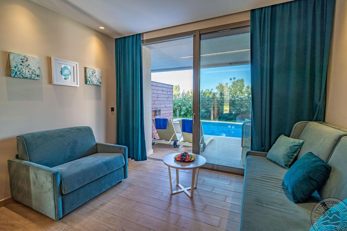 - макс. 2+2 или 3 чел.+ инфант, 31 м2); Junior suite (номер открытого типа, осн. кровать – двуспальная кровать, доп. – софа (1,40х1,90) и раскладное кресло- кровать (0,90х1,90), макс. 4 чел. + инфант, 36 м2); Есть номера для людей с ограниченными возможностями передвижения (по запросу). К оплате принимаются кредитные карты: Visa, MasterCard Банкомат: 2,4 км от отеля Размещение с животными: маленькие животные до 10 кг, по запросу Адрес: Almyros, Agios Panteleimonas, 49081, Acharavi, Corfu, Greece