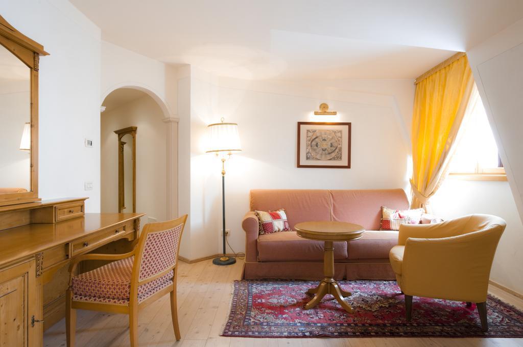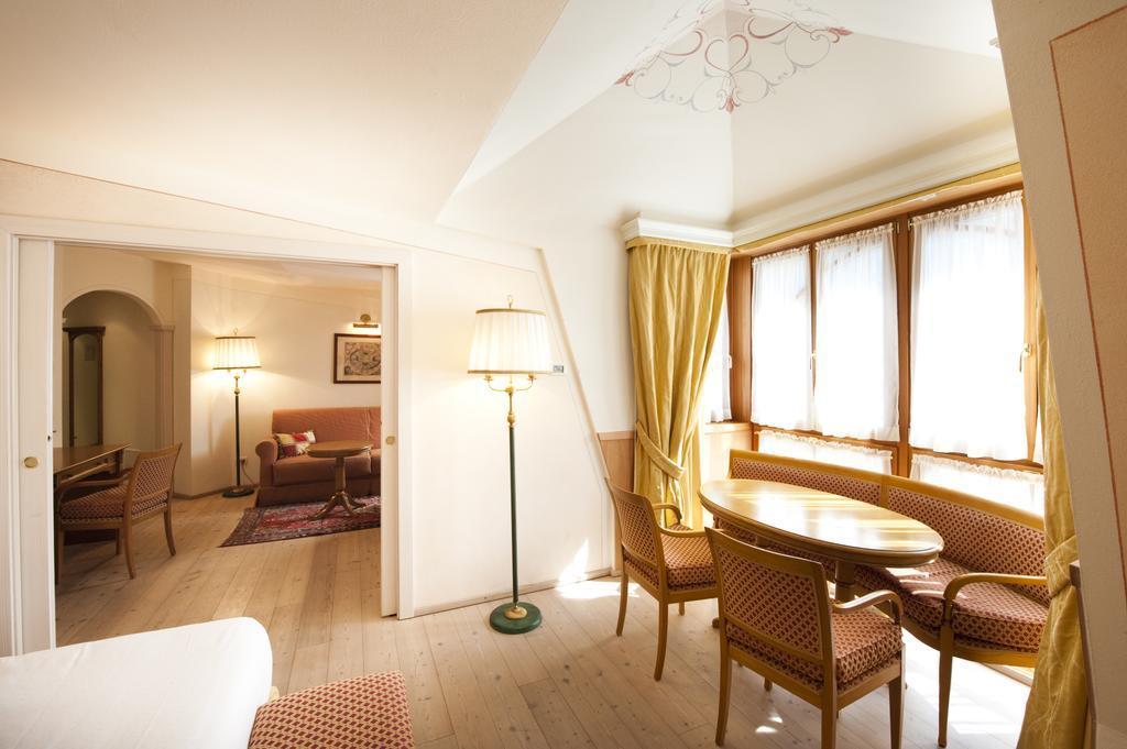 Размещение:Отель предлагает к размещению номера категорий:- Folletti Suite (макс. 2 взр. + 1 реб., 38 кв. м, на первом этаже, возможно одноместное размещение);- Elfi Suite (макс. 2 взр. + 1 реб., 42 кв. м, возможно одноместное размещение);- Cavalieri Suite (макс. 2 взр. + 1 реб., 42 кв. м, возможно одноместное размещение);- Dame Suite (макс. 2 взр. + 2 реб., 45 кв. м, возможно одноместное размещение, вид на горы);- Principi Suite (макс. 2 взр. + 2 реб., 48 кв. м, возможно одноместное размещение, вид на горы);- Regina Suite (макс. 2 взр. + 2 реб., 48 кв. м, возможно одноместное размещение, вид на горы).