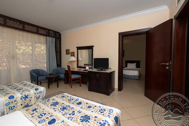 Номер:> сейф: в номере, бесплатно уборка номера: ежедневно смена белья: ежедневно (по запросу) утюг: по запросу, бесплатно пол: керамическая плитка телевизор: LCD фен: в номере, бесплатно кондиционер: индивидуальный ТВ: спутниковое (есть русский канал) ванна или душ room service: круглосуточно, платно балкон или терраса бутилированная вода (2 маленькие бутылки воды по приезде с ежедневным пополнением) телефон набор для приготовления чая/кофе Интернет: Wi-Fi, бесплатно