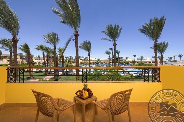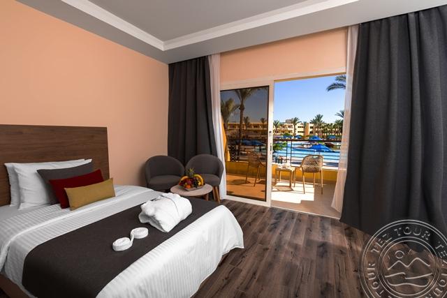 Standard room (pool, back view, макс. 2+2 / 3+1 чел., ванна, балкон или терраса, 32 м2). Также доступны connected room. Номера расположены в 3-этажном корпусе в релакс зоне удаленно от инфраструктуры и ресепшена (cм. прикрепленную карту). Около здания имеется свой бар и бассейн. Доп. кровать - 1 single bed.