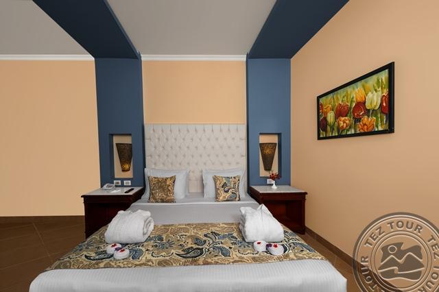Deluxe room (pool view, sea side view, макс. 2+2 / 3+1 чел, душ, балкон или терраса, 32 м2). Номера расположены в главном здании. В 2022 году был произведен ремонт номеров. Доп. кровать - 1 single bed.