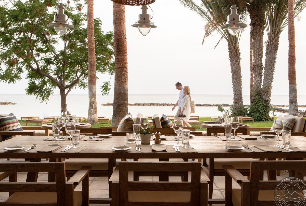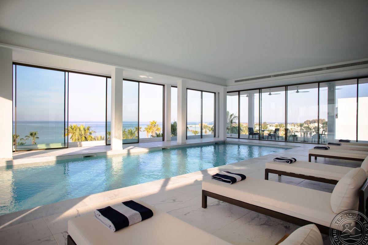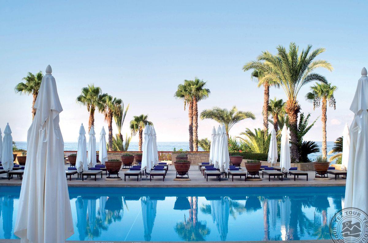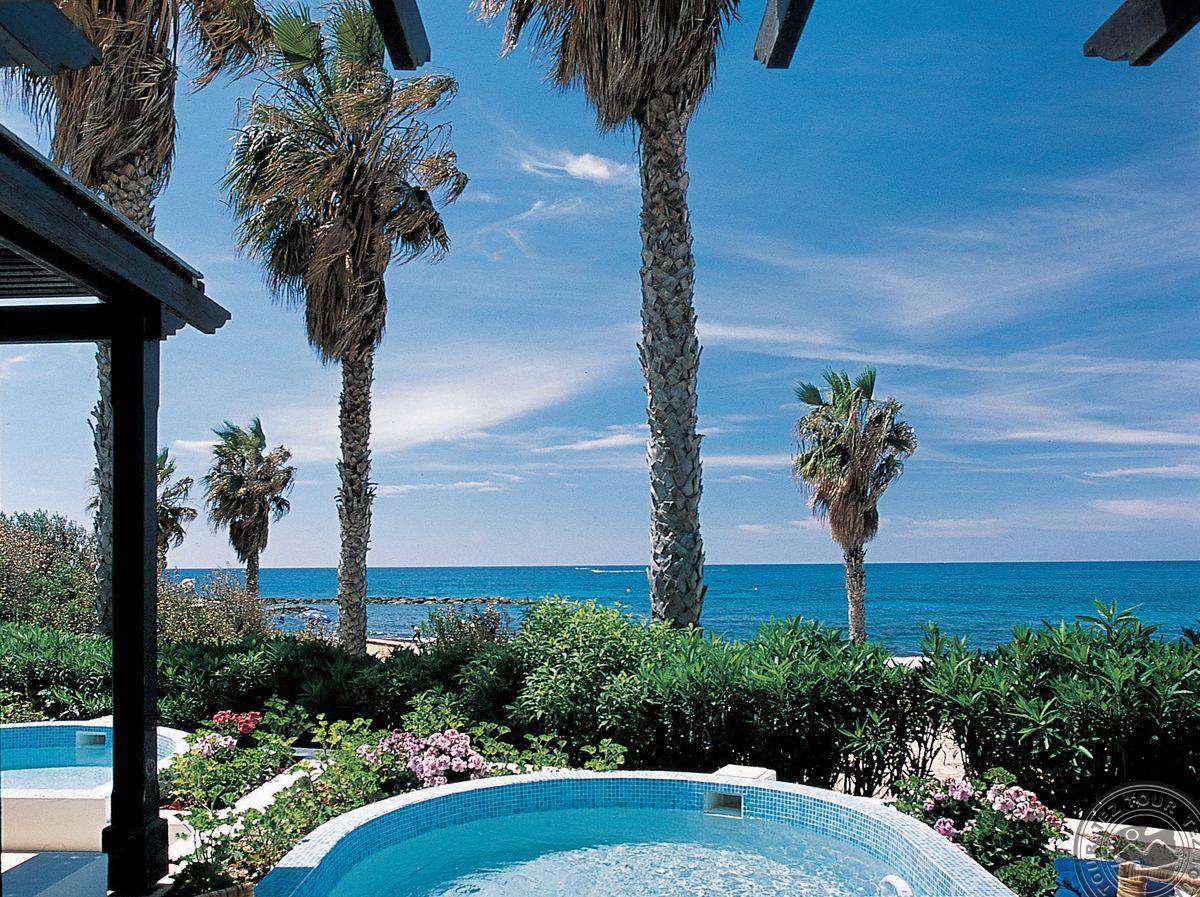 в 135 км от аэропорта Ларнаки, в 8 км от аэропорта Пафоса, в самом центре туристической зоны нижнего Пафоса, на первой линии.