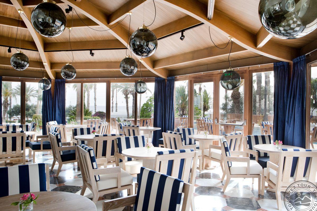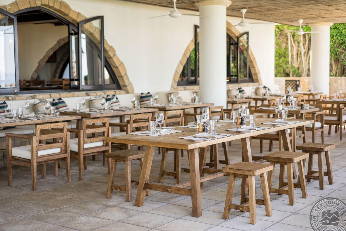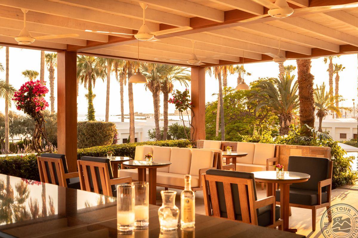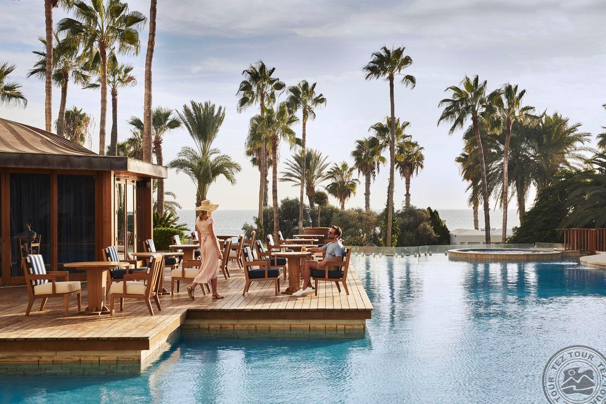 в 135 км от аэропорта Ларнаки, в 8 км от аэропорта Пафоса, в самом центре туристической зоны нижнего Пафоса, на первой линии.