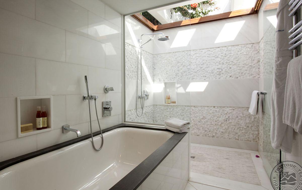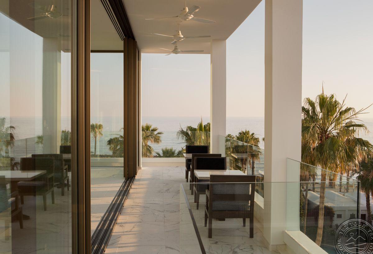 Alecos Penthouse Suite One Bedroom (95 м2, макс. 3 чел.) - спальня и гостиная, ванная комната со стеклянной крышей, джакузи, балкон, вид на море;