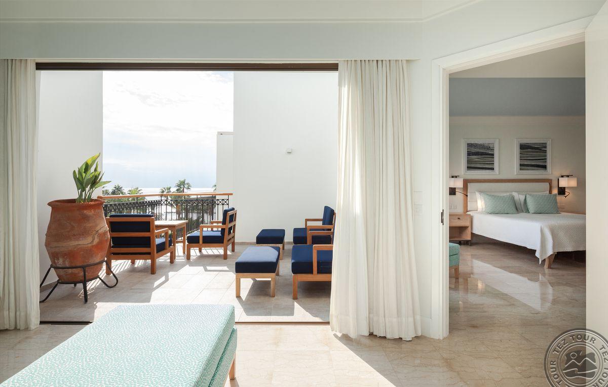 Superior Suite One Bedroom (55 м2, макс. 4 чел.) - спальня и гостиная, ванная комната с джакузи, балкон с лежаками, вид на море;