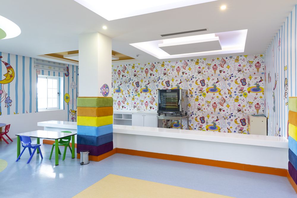 Детский бассейн, Детский клуб: (от 0 до 4 лет), Мини-клуб: (от 4 до 12 лет), Подростковый клуб: (от 12 до 16 лет), Детская площадка, Ресторан(ы) с высокими стульчиками для детей, Детское меню: (в наличии), Питание для младенцев: (в наличии), Услуги няни: (по запросу - платно)