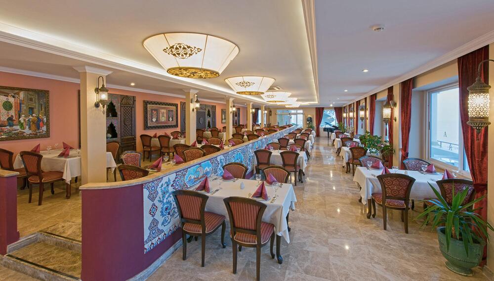 - РестораныOttoman Terrace - шведский стол (в главном корпусе)Harem (с 19:00 до 21:00) - a la carte (в главном корпусе)Agora (с 11:00 до 18:00) - a la carte, снеки (позади блока A)