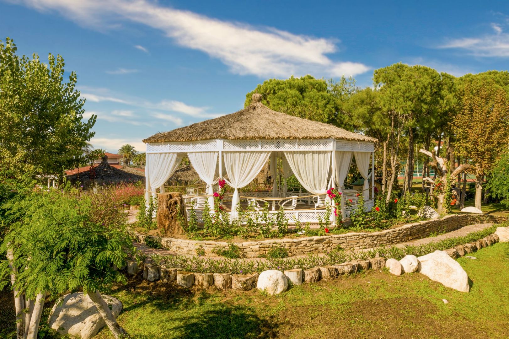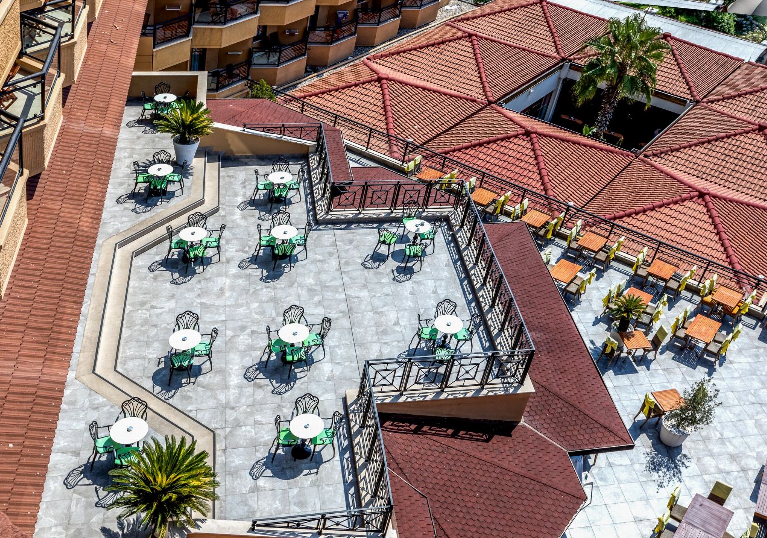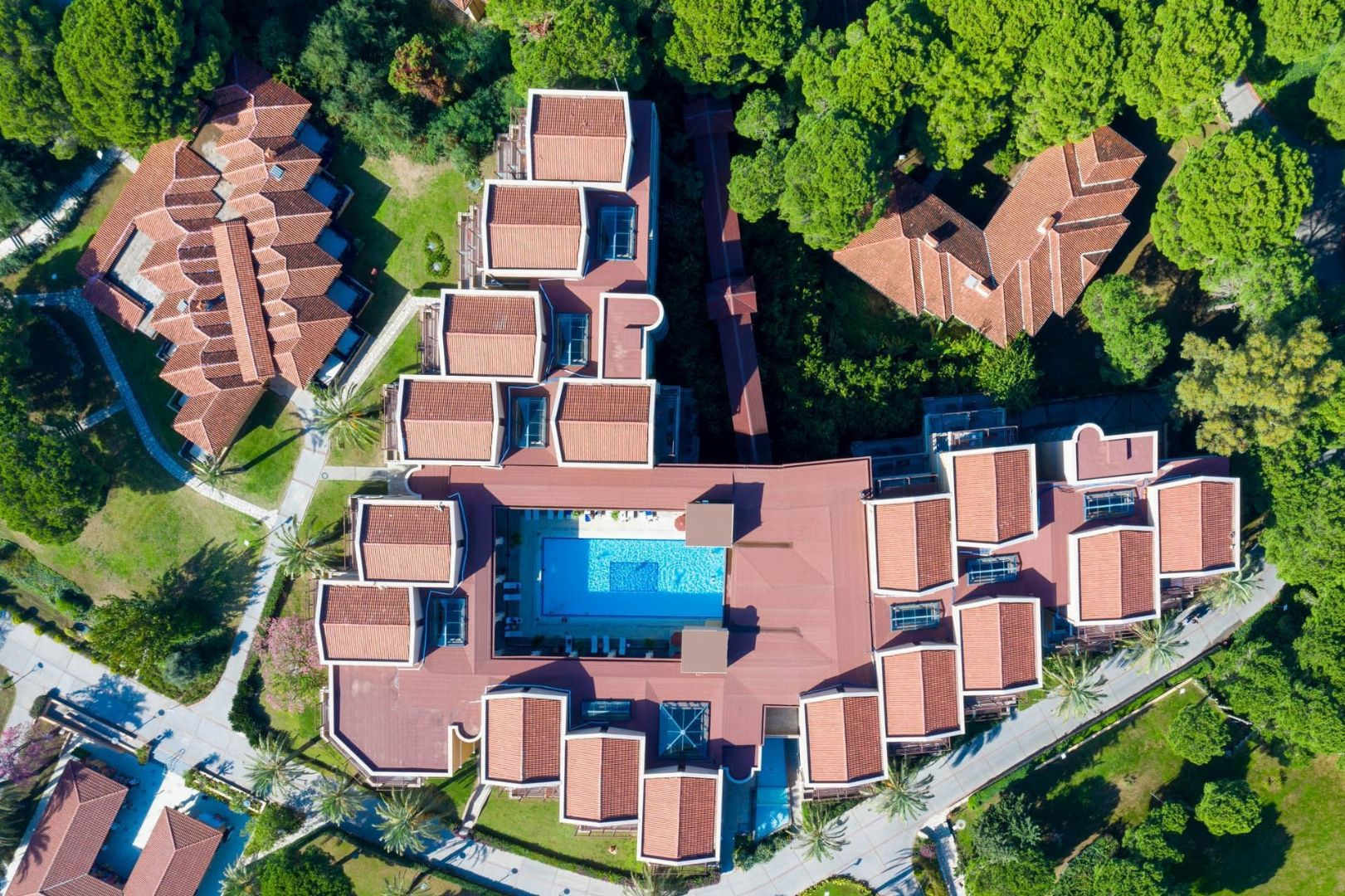 Количество зданий:1 основное здание (7 этажей, 2 лифта), 2 корпуса (4 этажа, лифты есть), 21 бунгало (2 этажа)