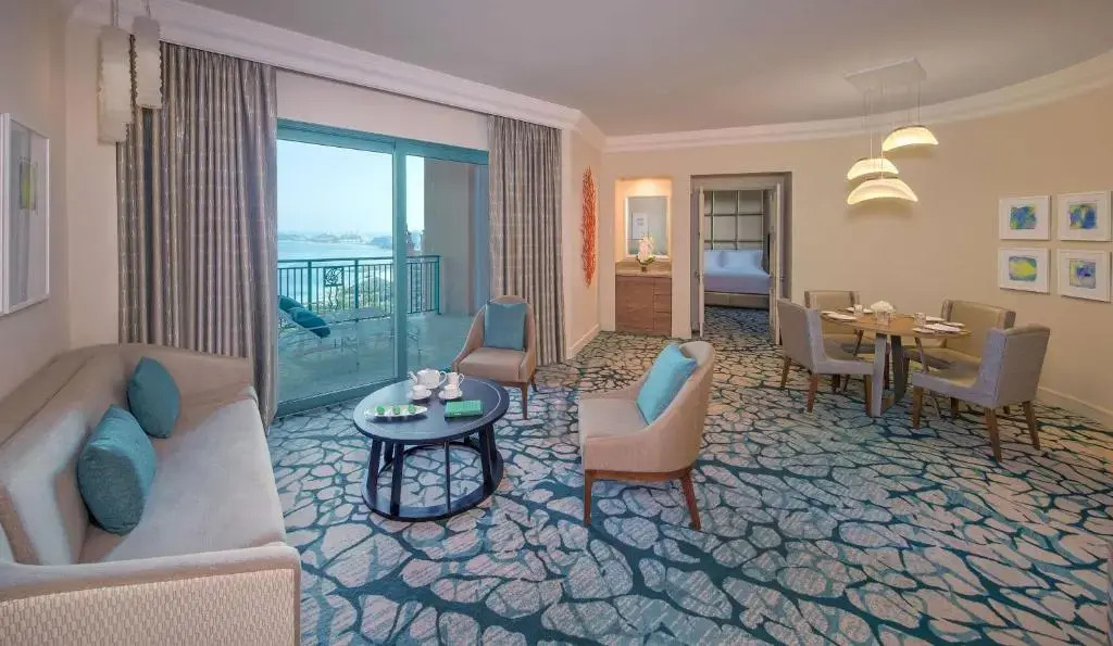 В отеле много развлечений на любой вкус, которые понравятся и взрослым, и детям. Самые яркие впечатления ждут гостей на горках аквапарка Aquaventure, в собственном дельфинарии и в аквариуме «Затерянный мир», где обитает свыше 65 тысяч представителей морской фауны.