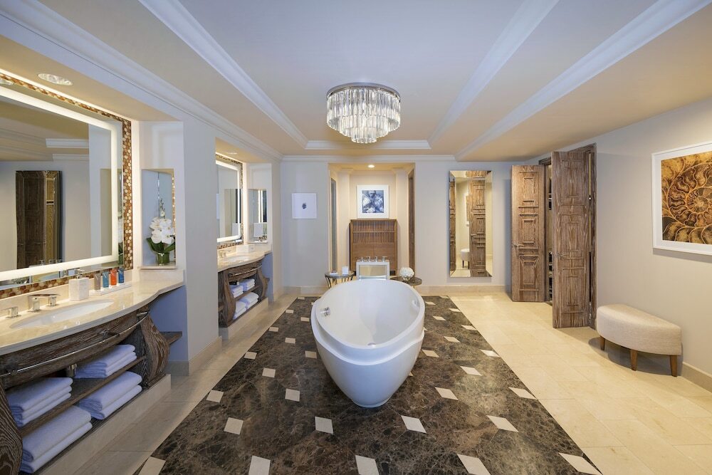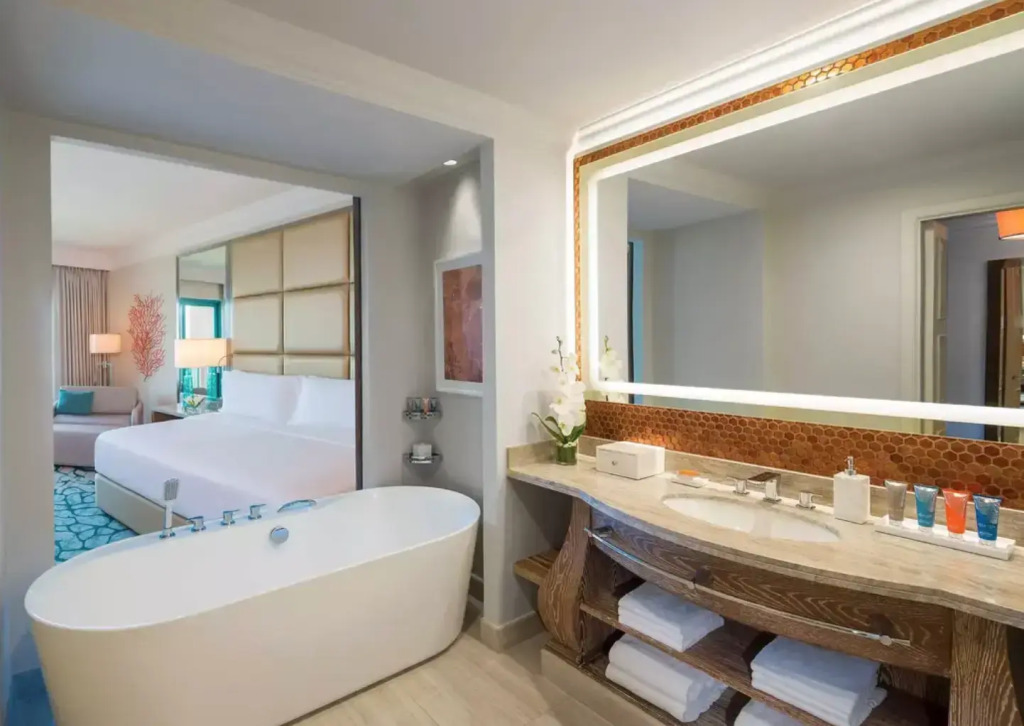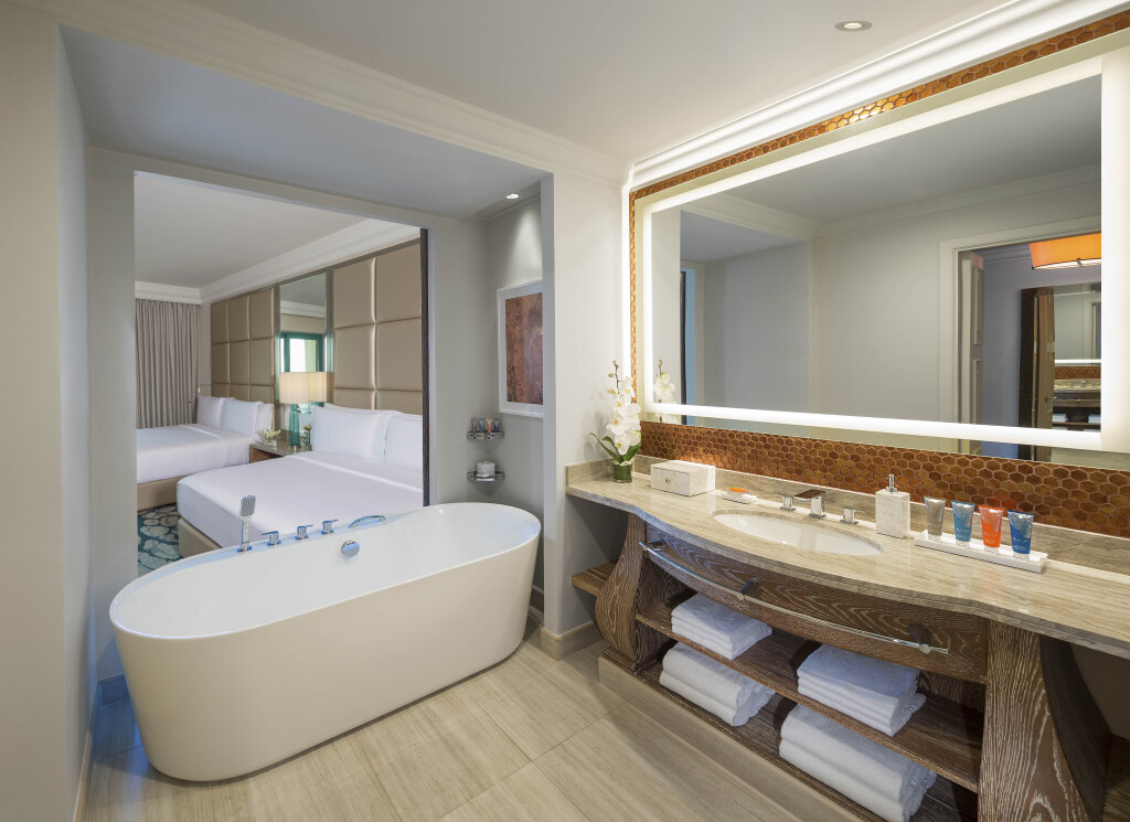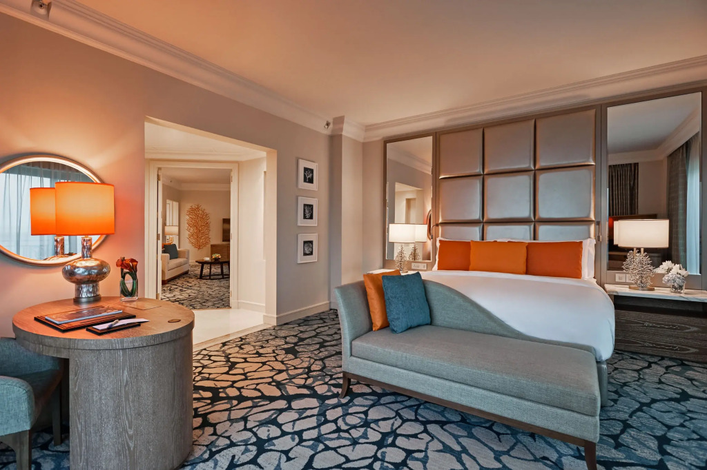 В отеле можно забронировать один из 1373 обычных номеров и еще 166 многокомнатных люксов, из окон которых открываются панорамные виды на остров или залив. Они оформлены в роскошном и элегантном восточном стиле и оснащены по самым современным стандартам.