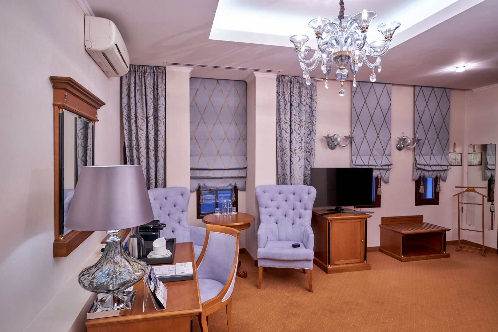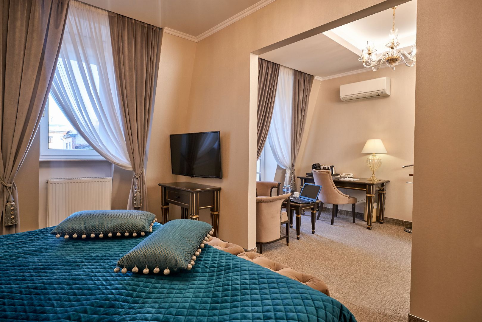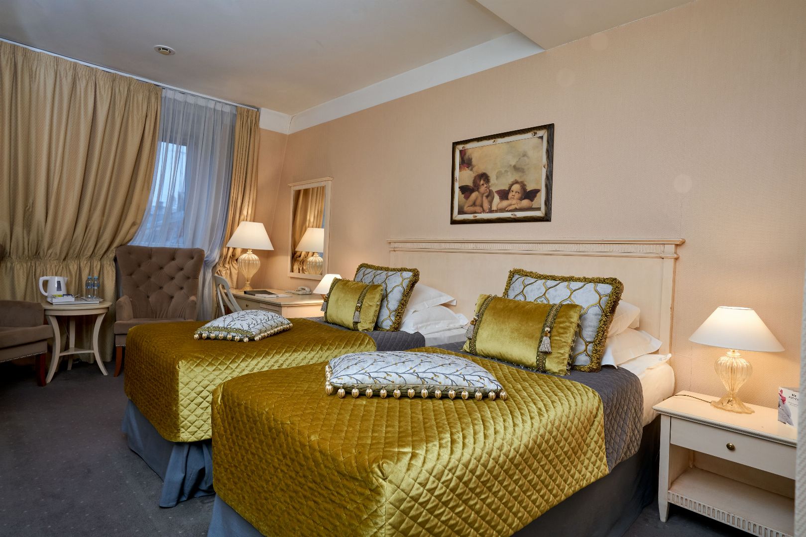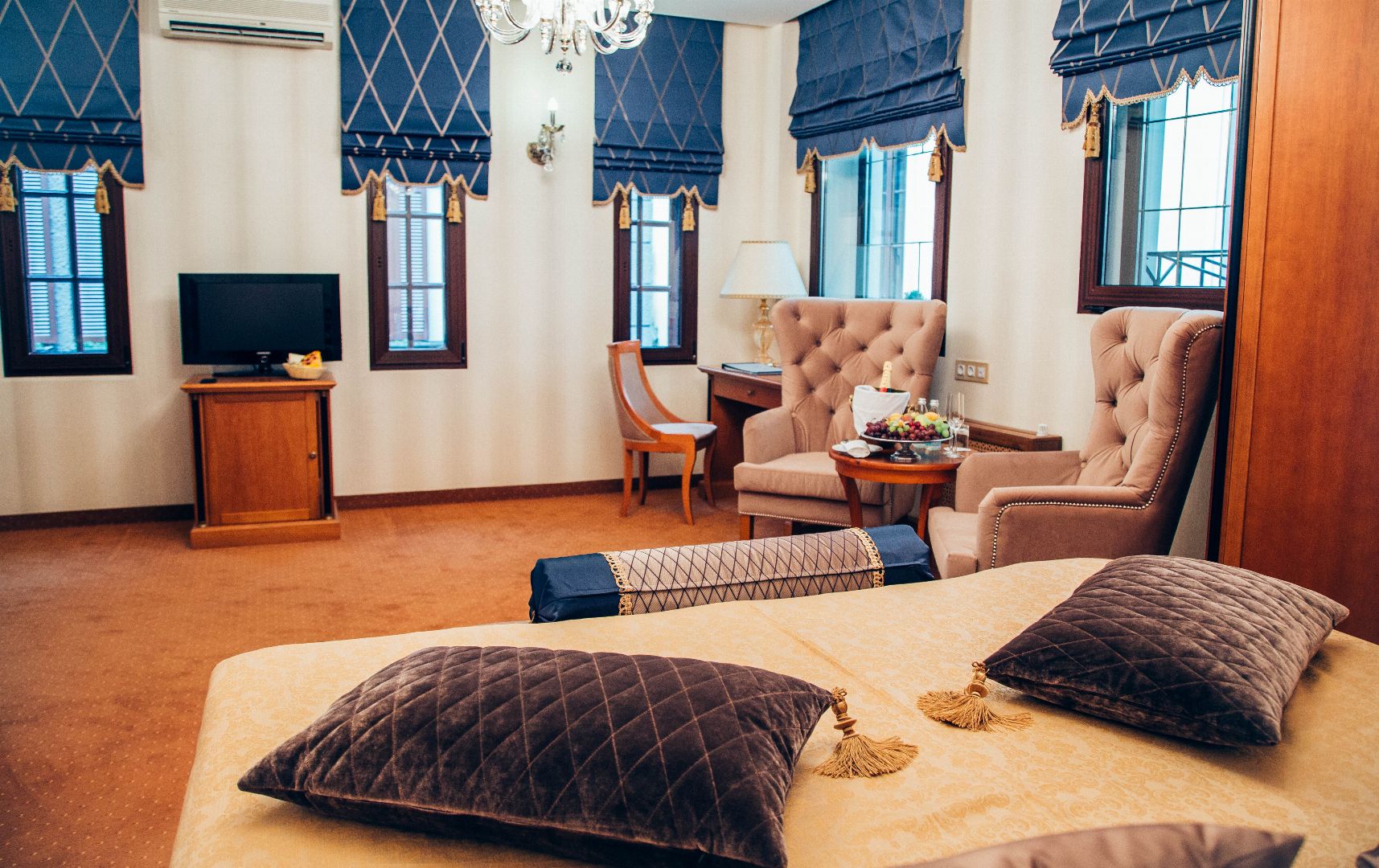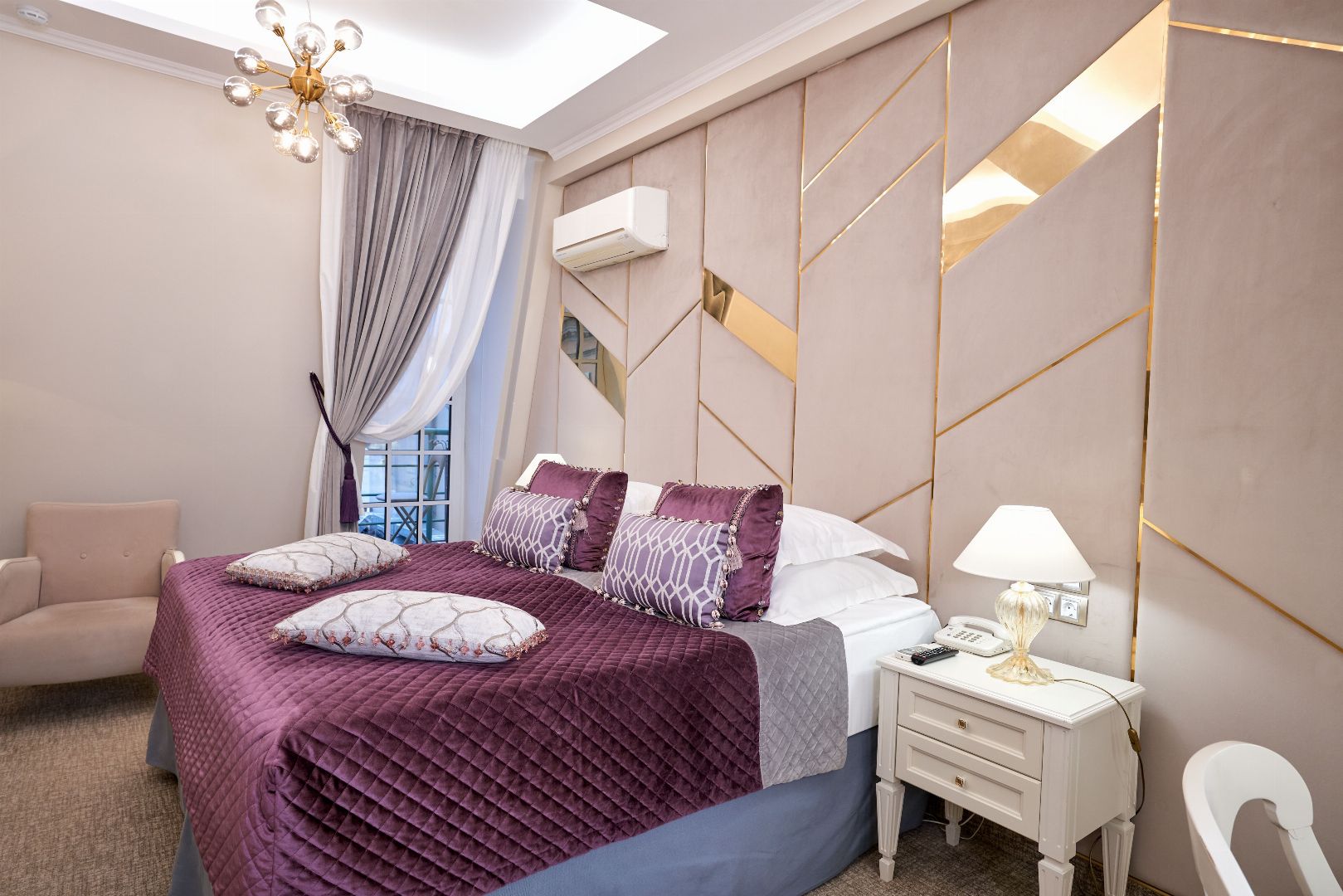 24 номера различной категории, от классического номера до роскошного Сюита Голден Гарден. Интерьер номеров покоряет своим великолепием с первого взгляда: утонченный дизайн, гармония и стиль присутствуют в каждой детали обстановки.