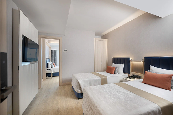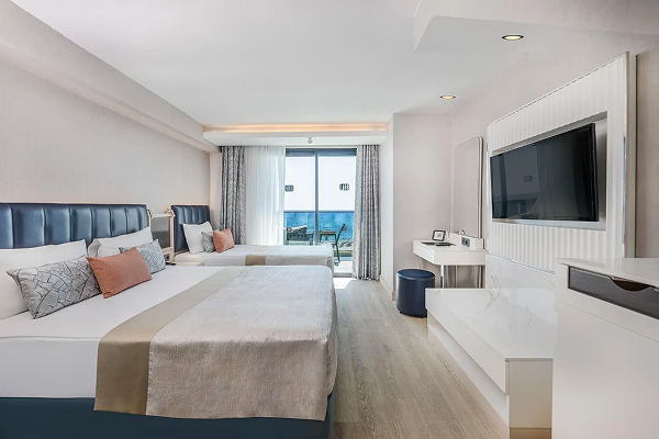 Family Rooms (38-41 м², макс. 4 взрослых + 1 ребенок, балкон) — вид на территорию/море.