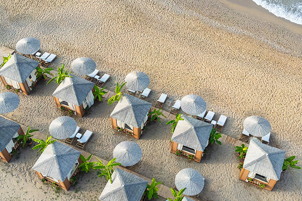 Частный песчано-галечный пляж (350 м). Есть 1 пирс (для взрослых и семей). Кабины и павильоны на пляже в зоне «Мальдивы» ($). Шезлонги, зонтики и пляжные полотенца — бесплатно.