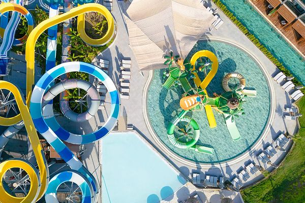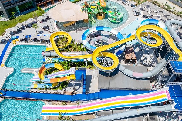На территории есть аквапарк для взрослых и аквапарк детей.