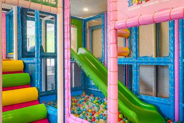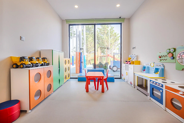 Мини-клуб (4-12 лет), клуб для подростков (13-16 лет), детский амфитеатр, комната для сна, батут, игровая комната, комната для активных игр, бассейн с шариками, игровая комната с Playstation, комната с конструкторами Lego, игровая комната на открытом воздухе.