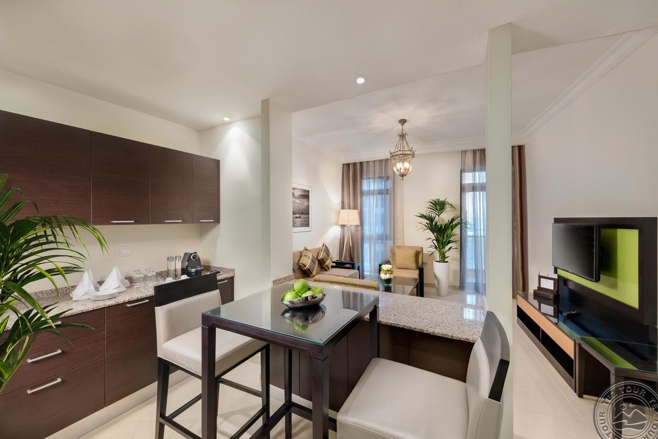 23 One Bedroom Suite (2-7 этаж, вид на город, спальня и гостиная с обеденной зоной (обеденный стол на 4 чел.) и кухонным уголком (микроволновая печь), кровать king-size, доп. – кровать, балкон не во всех номерах, макс. 3 или 2 + 2 чел., 69 м2)