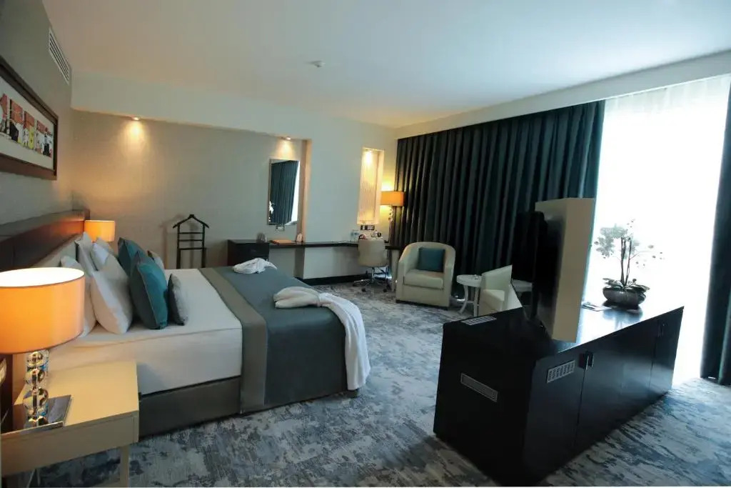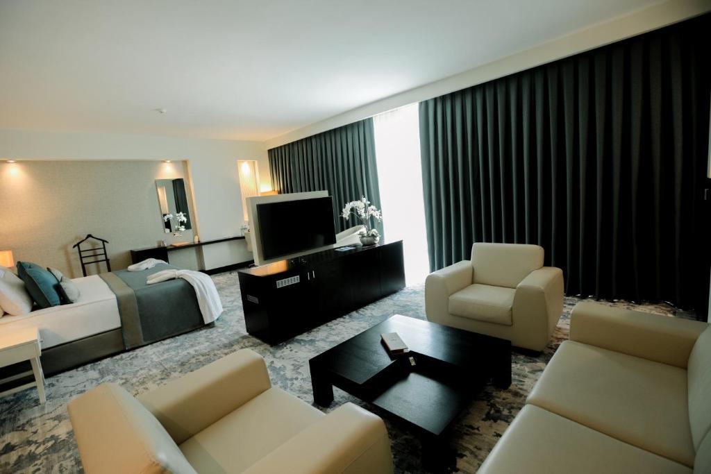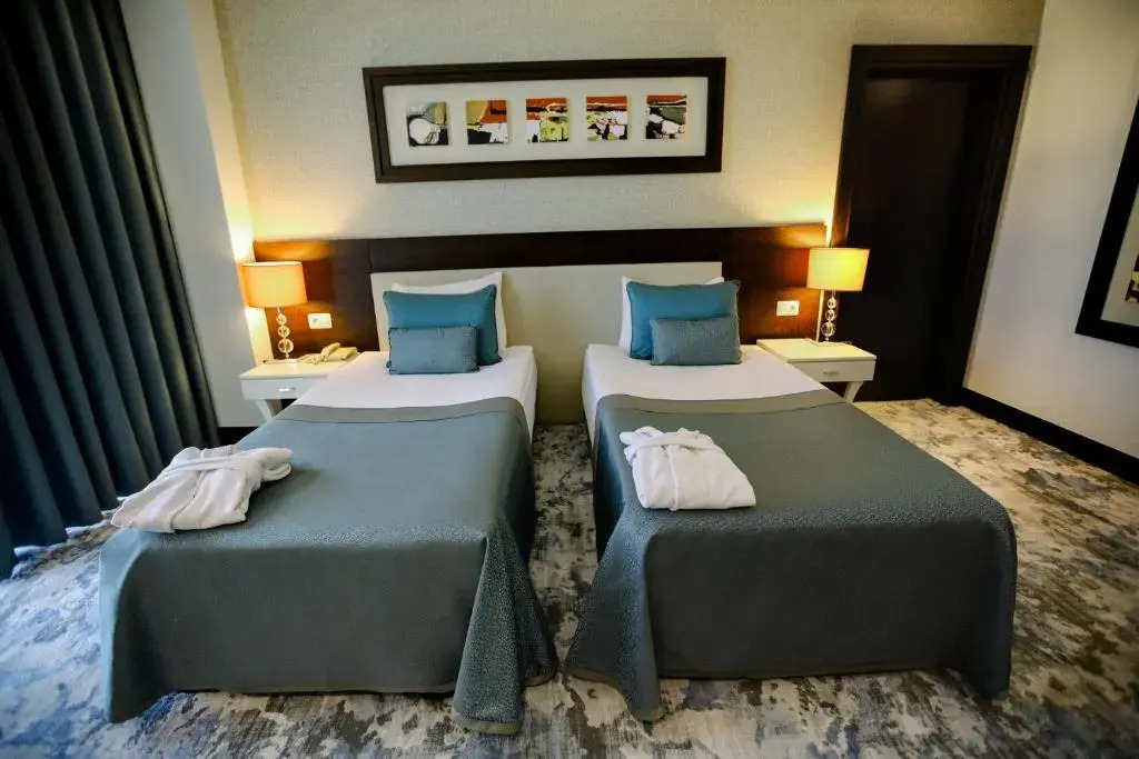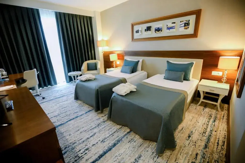 Описание номеров Baia Bursa Hotel 5*:В отеле Baia Bursa в распоряжении гостей 150 комфортабельных номеров с телевизором, кондиционером и мини-баром. В ванных комнатах есть фен и бесплатные туалетные принадлежности.