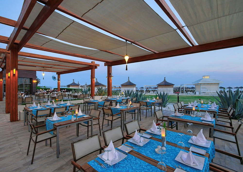 - РестораныBaia - шведский стол, главныйTaurus - a la carte, турецкая кухняGulet - a la carte, итальянская кухняEnjoy Snack (с 12:00 до 15:30)Посещение ресторанов a la carte - платно, по предварительному бронированию