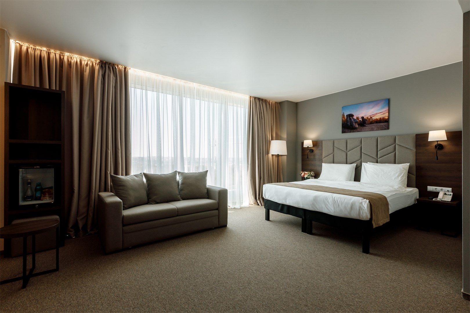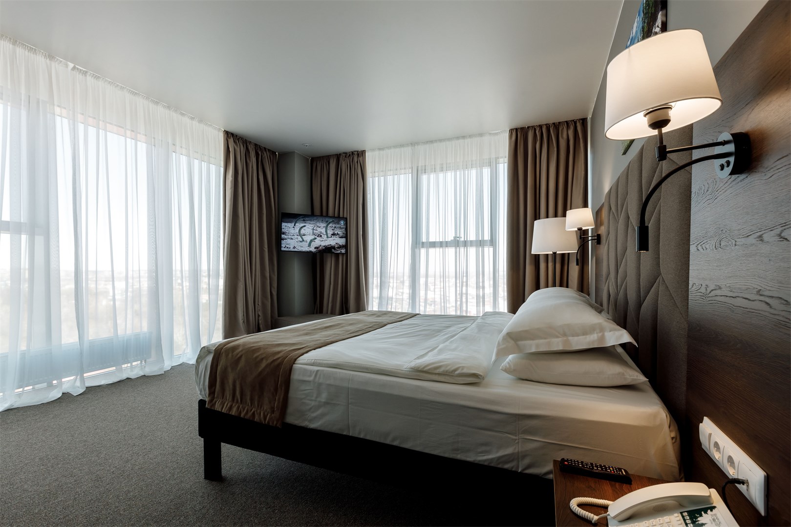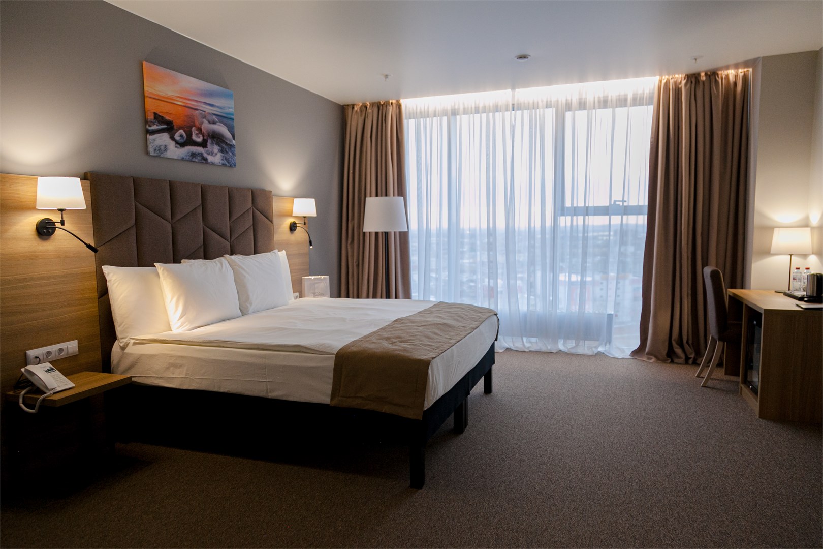 Описание:Пятизвездочный отель «Байкал Форест» находится в центральном районе Иркутска всего в 5 минутах езды от культурного и делового центра. Рядом — центральный городской парк, большой выбор кафе и ресторанов, остановки общественного транспорта, откуда легко можно добраться в любую точку города. А дорога до международного аэропорта займет не более 15 минут.Отель разместился в современном многоэтажном здании, возвышающемся на пересечении Советской и Байкальской улиц. Ресепшен располагается на первом этаже, а номера с панорамными окнами — на седьмом. Жилой фонд включает в себя комфортабельные номера улучшенных категорий. В каждом имеется индивидуальный санузел с душевой кабиной, кондиционер, бытовая техника — плазменный телевизор, фен, электрочайник. Стильный интерьер комнат выдержан в приятных бежевых оттенках, из окон открываются живописные виды на город.В распоряжении гостей ресторан с банкетным залом и бар на первом этаже. Также в отеле для гостей работают крытый бассейн, фитнес-зал и сауна. Для автовладельцев предусмотрена крытая охраняемая парковка. Деловые мероприятия, переговоры и встречи можно провести в современном конференц-зале, рассчитанном на 60 человек.