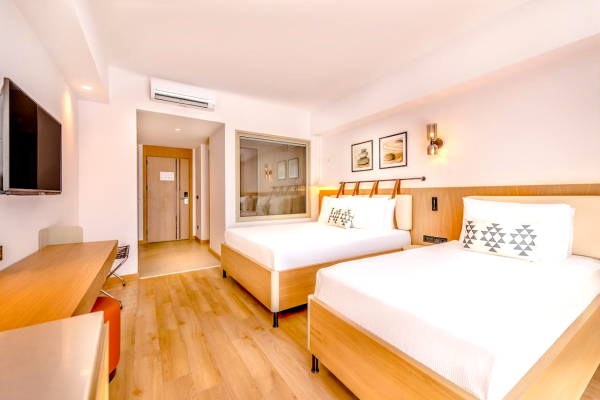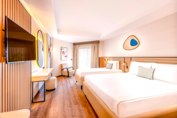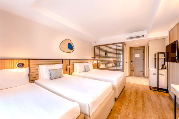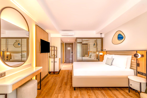 07.04.2025. Описание новой категории номера Eco Standard Room: французский балкон (без вида, 24 м²; макс. 2 взрослых + 1 ребенок; 1 большая кровать и 1 диван, или 2 односпальные кровати; ключевая карта; сплит-кондиционер; мини-бар (ежедневное пополнение); чайник (чайно-кофейный сервиз); Wi-fi; LCD-телевизор; сейф для ценных вещей (бесплатно); телефон с прямым выходом; ванная комната (душ) и туалет; гигиенический набор в ванной комнате; тапочки; фен; зеркало на туалетном столике; ламинат полы.