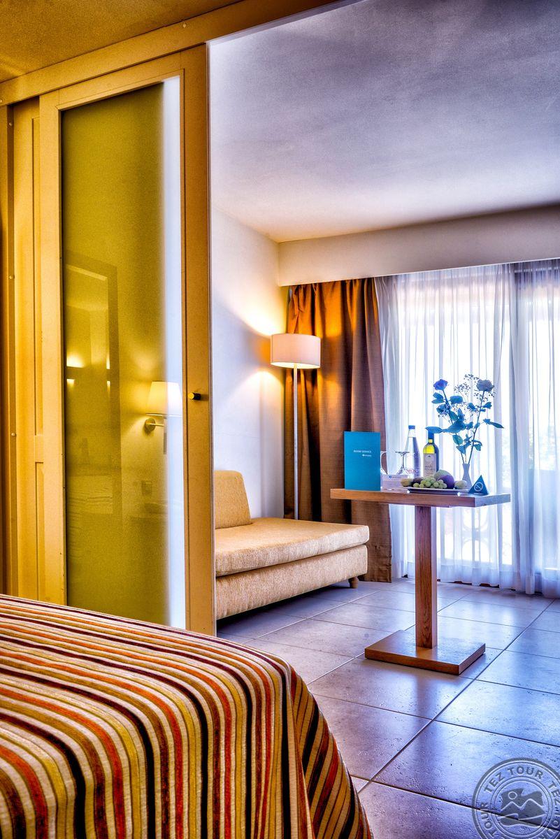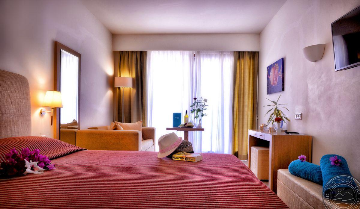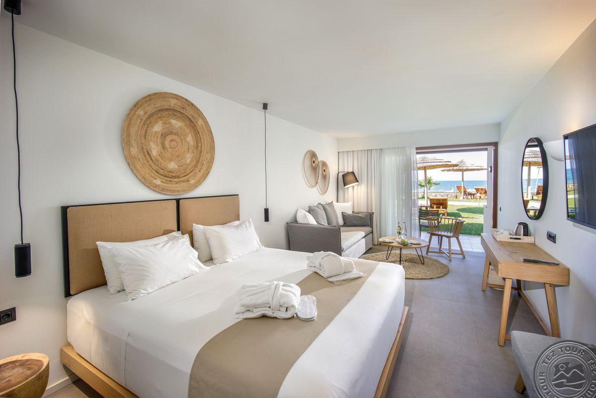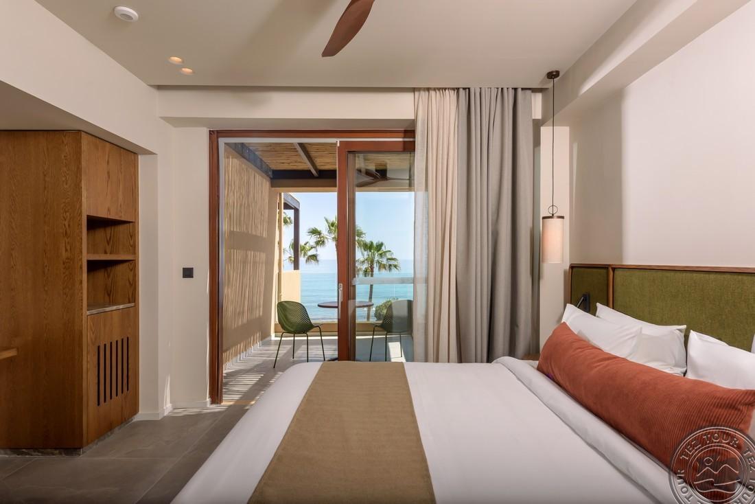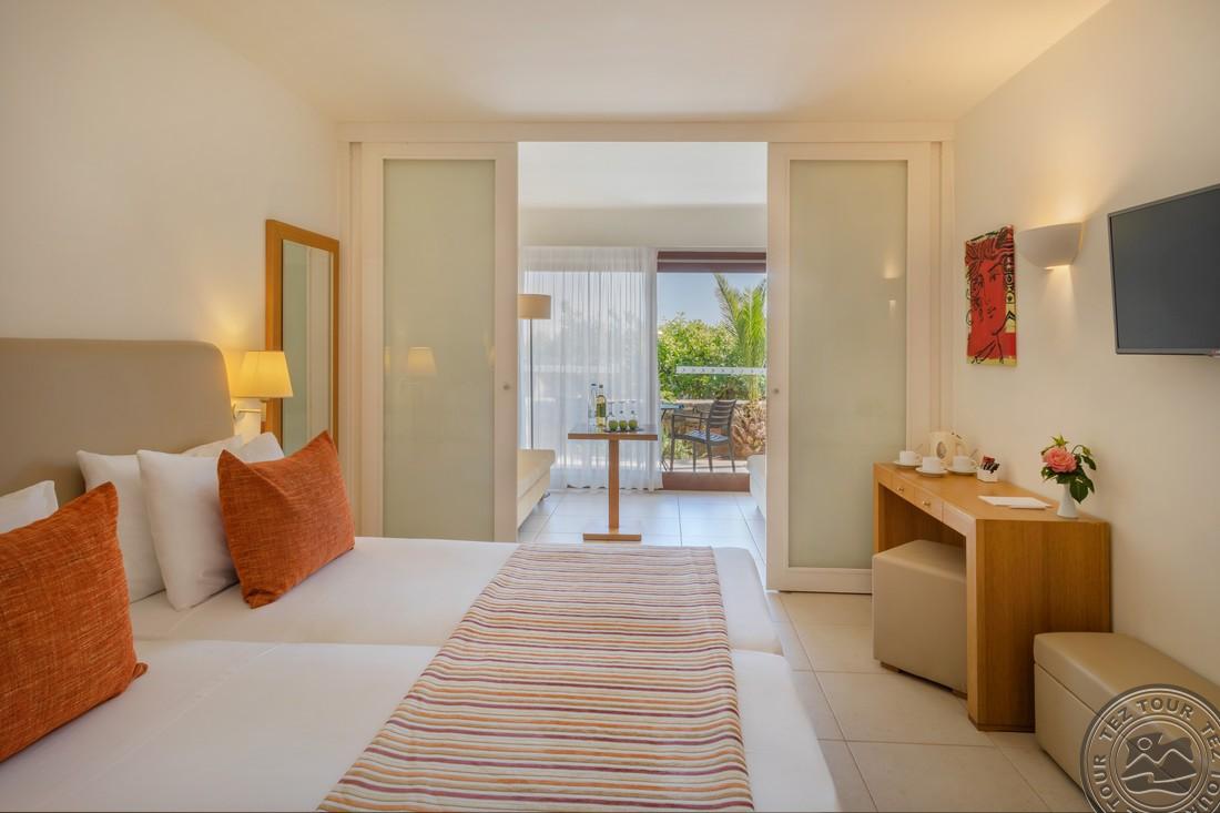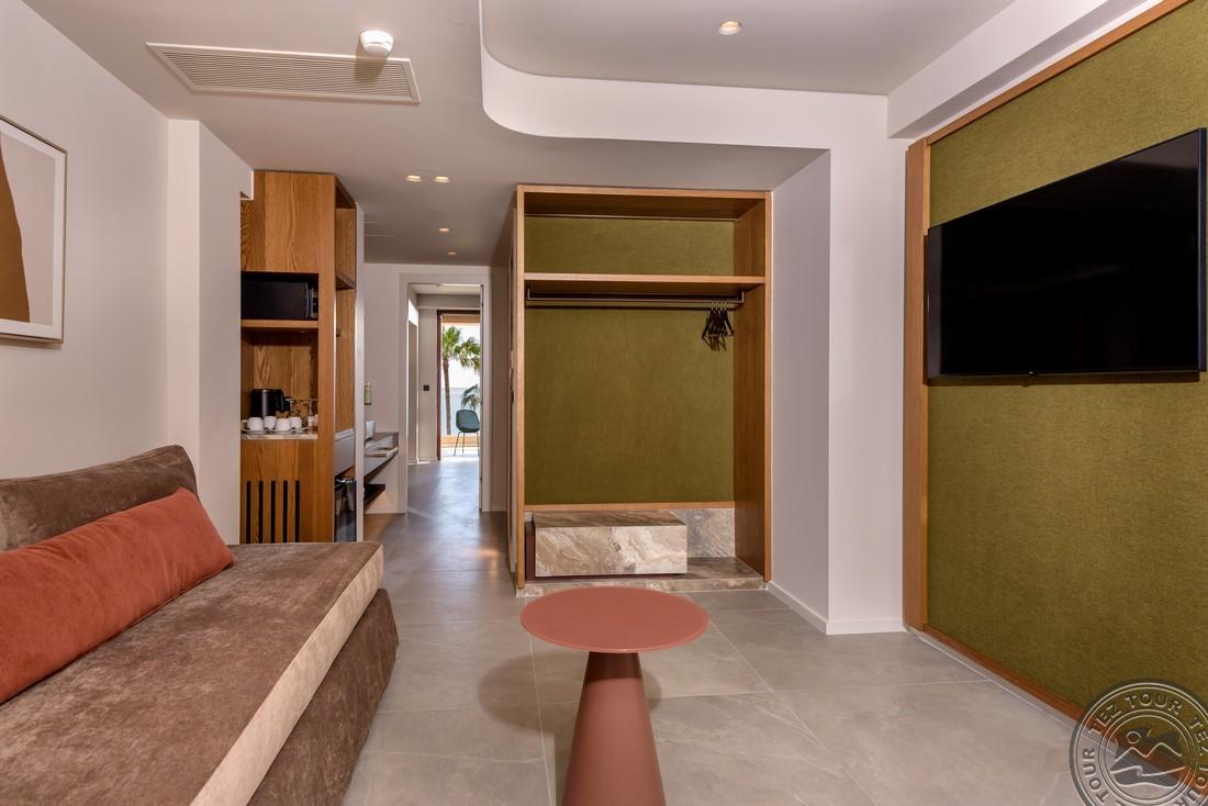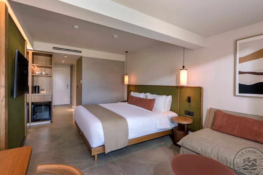 - в 2022 - Superior rooms, в 2023 - double rooms и family rooms sea view в здании Annex, в 2024/2025- Junior Suites Garden View и Family 2 Rooms Sea View Состоит из нескольких корпусов разной этажности, комплекса бунгало, а также отдельного здания Annex (в 70 м от основной территории отеля). В отеле 226 номеров: Standard Annex building (расположены в корпусе Annex, осн. кровать – 2 односпальные, терраса, макс. 2 чел., 20 м2); Family 2 Bedroom Annex Building SV (расположены в корпусе Annex, вид на море, гостиная и спальня с дверью, осн. кровать – 2 односпальные, балкон или терраса, макс. 2+2 чел., 40-45 м2); Standard (расположены на одной линии с рецепцией, вид на сад, осн. кровать –2 односпальные, доп. – софа, терраса, макс. 3 чел., 20-24 м2); Standard Sea View (расположены на одной линии с рецепцией, вид на море, осн. кровать –двуспальная (2 односпальные по запросу), доп. – софа, балкон, макс. 3 чел., 20-24 м2); Superior (вид на сад, осн. кровать – двуспальная, балкон или терраса, макс. 3 чел., 20-24 м2); Family Sliding Door (вид на сад, спальня и гостиная, разделенные раздвижной дверью, основная кровать – 2 односпальные, доп. – 2 софы, терраса, макс. 2+2 чел., 30 м2); Family Two Bedroom Sea View (вид на море, гостиная и спальня с межкомнатной или раздвижной дверью, основная кровать – 2 односпальные, доп. – 2 софы, балкон или терраса, макс. 2+2 чел., 40 м2); Junior Suite Garden View (полностью реновированы в 2025 году, с видом на сад, спальня с зоной, осн.кровать – 2 односпальные, доп. –софа, терраса, макс. 3 чел., 26 м2); Junior Suite Private Pool (номер открытого плана с видом на сад, осн. кровать – двуспальная, доп. – софа, терраса, индивидуальный бассейн, макс. 3 чел., 26 м2); Bungalow Pool Front or SV (вид на бассейн или море, однокомнатный номер, осн. кровать – двуспальная, доп. – софа, терраса, макс. 3 чел., 26 м2); Suite Private Pool SV (вид на море, спальня и гостиная с межкомнатной дверью, осн. кровать - двуспальная, доп. - софа, терраса, индивидуальный бассейн, макс. 3+1 чел., 64 м2). Есть номера для людей с ограниченными возможностями передвижения (Standard). К оплате принимаются кредитные картыVisa, MasterCard, Maestro, American Express Размещение с животными: нет Банкомат: в 400 м от отеля