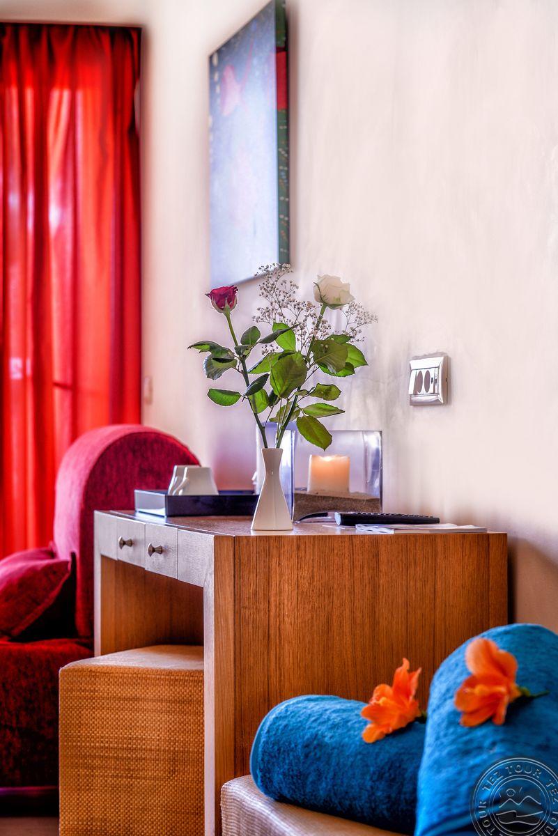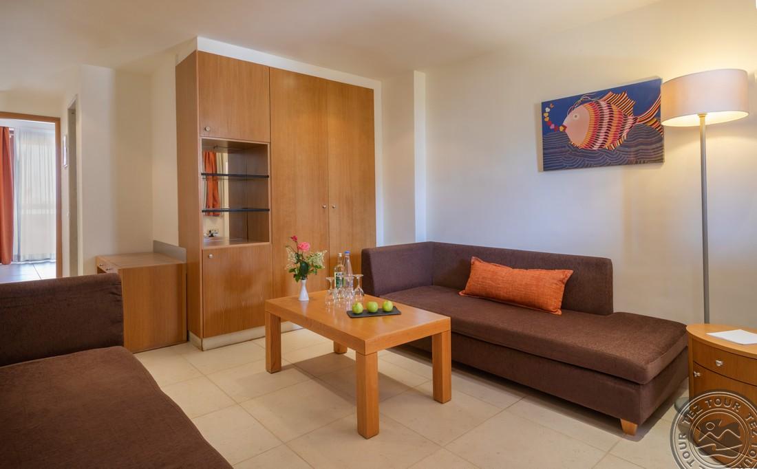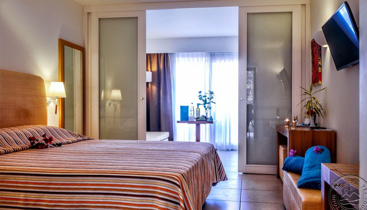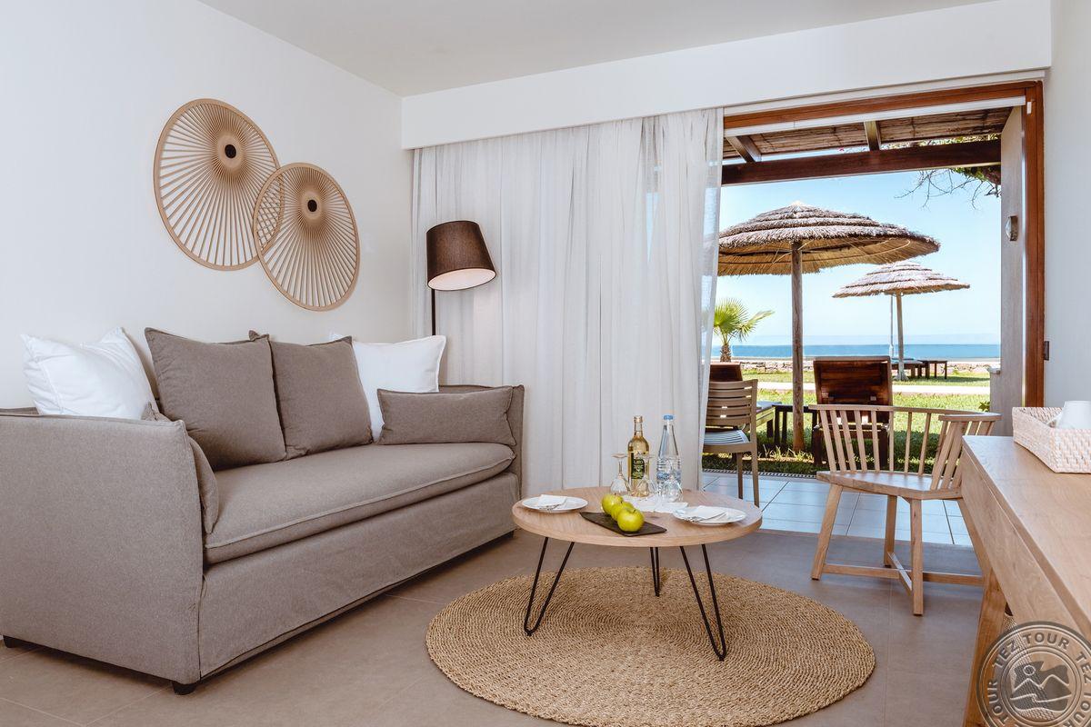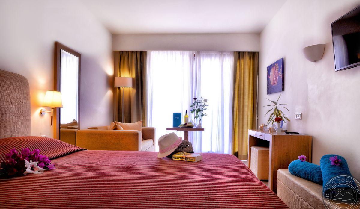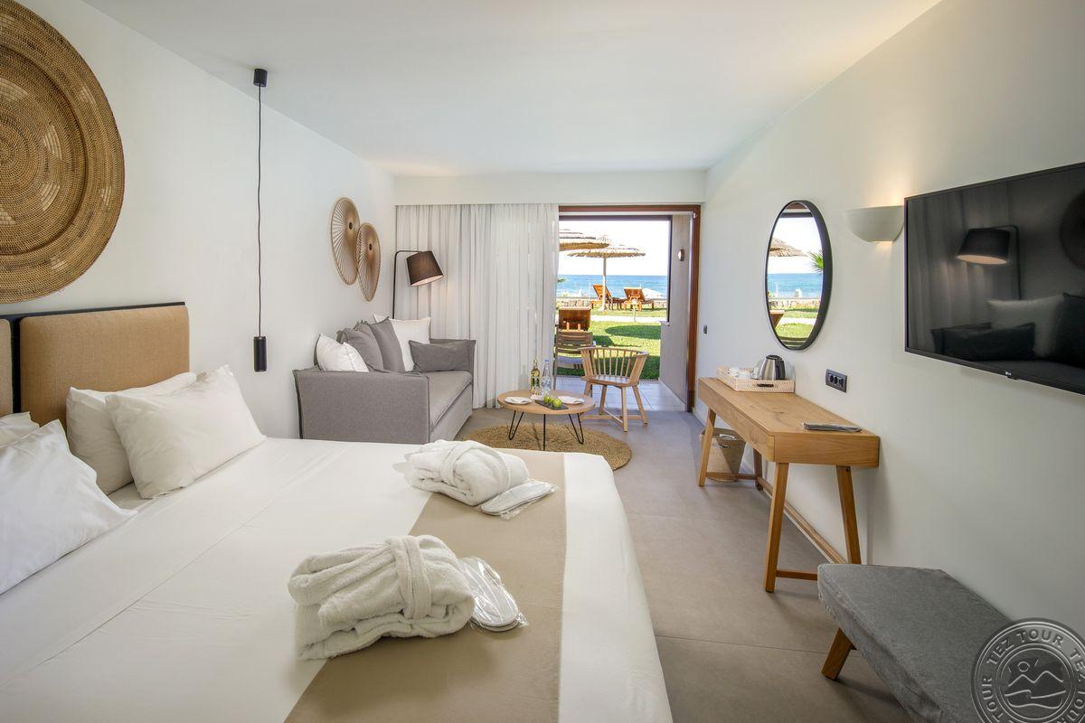 - в 2022 - Superior rooms, в 2023 - double rooms и family rooms sea view в здании Annex, в 2024/2025- Junior Suites Garden View и Family 2 Rooms Sea View Состоит из нескольких корпусов разной этажности, комплекса бунгало, а также отдельного здания Annex (в 70 м от основной территории отеля). В отеле 226 номеров: Standard Annex building (расположены в корпусе Annex, осн. кровать – 2 односпальные, терраса, макс. 2 чел., 20 м2); Family 2 Bedroom Annex Building SV (расположены в корпусе Annex, вид на море, гостиная и спальня с дверью, осн. кровать – 2 односпальные, балкон или терраса, макс. 2+2 чел., 40-45 м2); Standard (расположены на одной линии с рецепцией, вид на сад, осн. кровать –2 односпальные, доп. – софа, терраса, макс. 3 чел., 20-24 м2); Standard Sea View (расположены на одной линии с рецепцией, вид на море, осн. кровать –двуспальная (2 односпальные по запросу), доп. – софа, балкон, макс. 3 чел., 20-24 м2); Superior (вид на сад, осн. кровать – двуспальная, балкон или терраса, макс. 3 чел., 20-24 м2); Family Sliding Door (вид на сад, спальня и гостиная, разделенные раздвижной дверью, основная кровать – 2 односпальные, доп. – 2 софы, терраса, макс. 2+2 чел., 30 м2); Family Two Bedroom Sea View (вид на море, гостиная и спальня с межкомнатной или раздвижной дверью, основная кровать – 2 односпальные, доп. – 2 софы, балкон или терраса, макс. 2+2 чел., 40 м2); Junior Suite Garden View (полностью реновированы в 2025 году, с видом на сад, спальня с зоной, осн.кровать – 2 односпальные, доп. –софа, терраса, макс. 3 чел., 26 м2); Junior Suite Private Pool (номер открытого плана с видом на сад, осн. кровать – двуспальная, доп. – софа, терраса, индивидуальный бассейн, макс. 3 чел., 26 м2); Bungalow Pool Front or SV (вид на бассейн или море, однокомнатный номер, осн. кровать – двуспальная, доп. – софа, терраса, макс. 3 чел., 26 м2); Suite Private Pool SV (вид на море, спальня и гостиная с межкомнатной дверью, осн. кровать - двуспальная, доп. - софа, терраса, индивидуальный бассейн, макс. 3+1 чел., 64 м2). Есть номера для людей с ограниченными возможностями передвижения (Standard). К оплате принимаются кредитные картыVisa, MasterCard, Maestro, American Express Размещение с животными: нет Банкомат: в 400 м от отеля