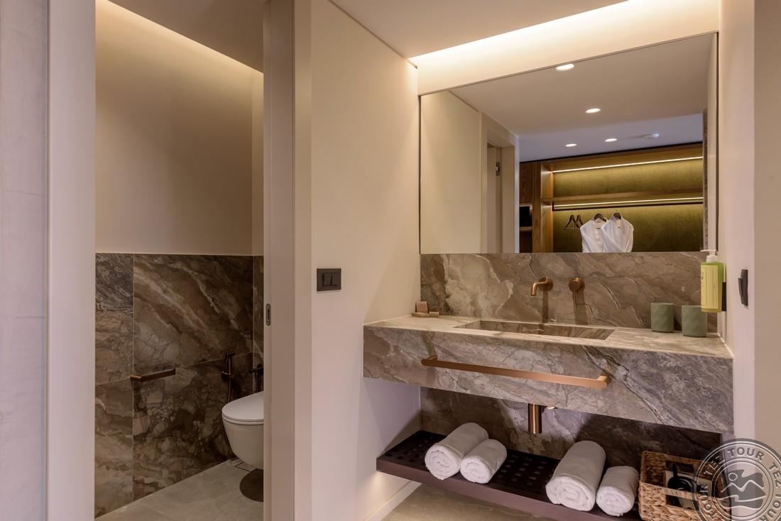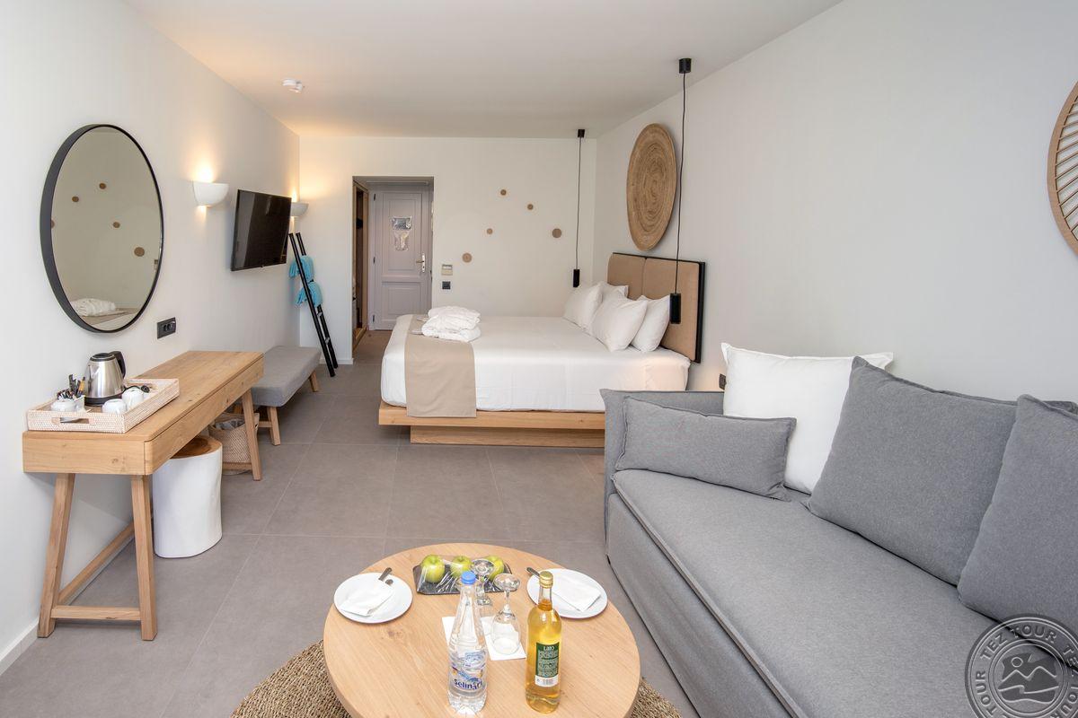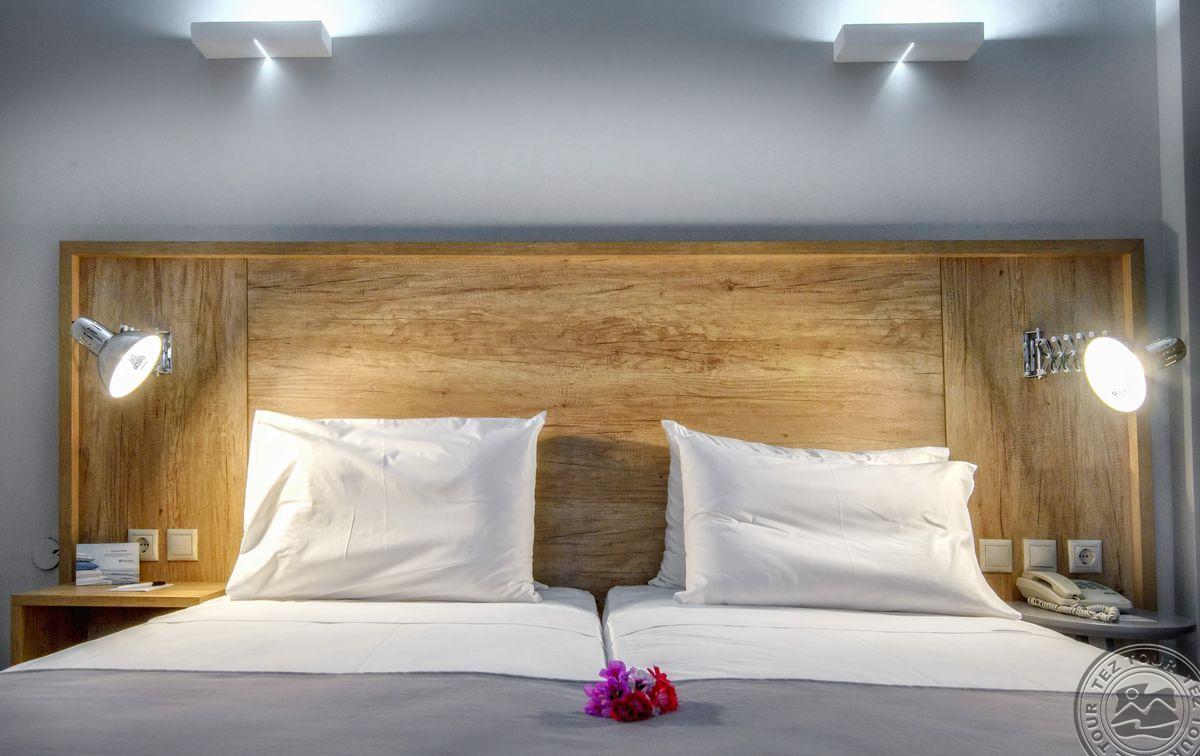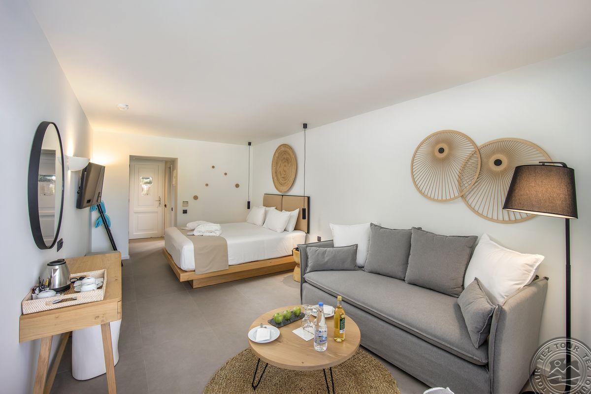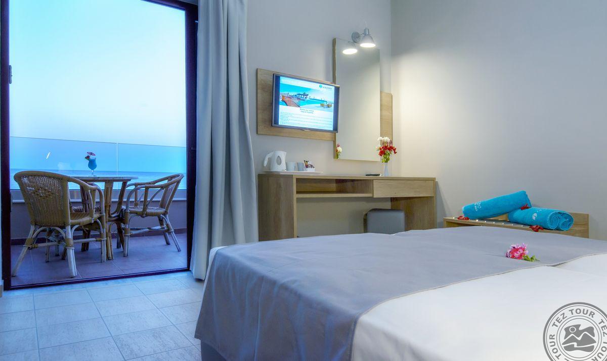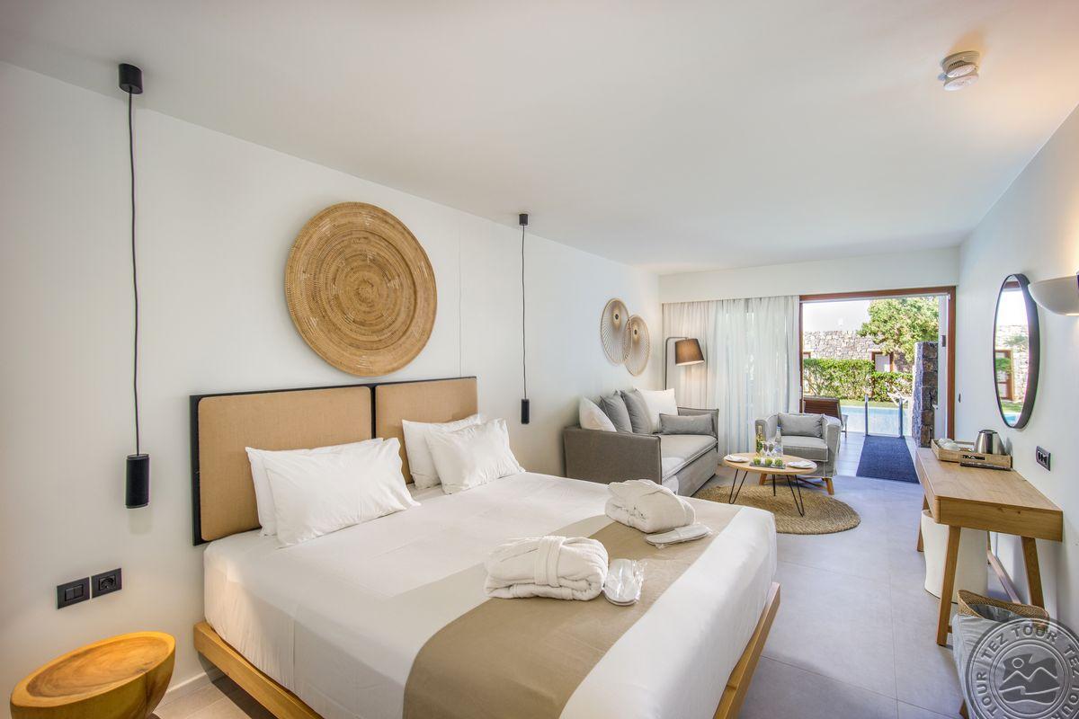 - в 2022 - Superior rooms, в 2023 - double rooms и family rooms sea view в здании Annex, в 2024/2025- Junior Suites Garden View и Family 2 Rooms Sea View Состоит из нескольких корпусов разной этажности, комплекса бунгало, а также отдельного здания Annex (в 70 м от основной территории отеля). В отеле 226 номеров: Standard Annex building (расположены в корпусе Annex, осн. кровать – 2 односпальные, терраса, макс. 2 чел., 20 м2); Family 2 Bedroom Annex Building SV (расположены в корпусе Annex, вид на море, гостиная и спальня с дверью, осн. кровать – 2 односпальные, балкон или терраса, макс. 2+2 чел., 40-45 м2); Standard (расположены на одной линии с рецепцией, вид на сад, осн. кровать –2 односпальные, доп. – софа, терраса, макс. 3 чел., 20-24 м2); Standard Sea View (расположены на одной линии с рецепцией, вид на море, осн. кровать –двуспальная (2 односпальные по запросу), доп. – софа, балкон, макс. 3 чел., 20-24 м2); Superior (вид на сад, осн. кровать – двуспальная, балкон или терраса, макс. 3 чел., 20-24 м2); Family Sliding Door (вид на сад, спальня и гостиная, разделенные раздвижной дверью, основная кровать – 2 односпальные, доп. – 2 софы, терраса, макс. 2+2 чел., 30 м2); Family Two Bedroom Sea View (вид на море, гостиная и спальня с межкомнатной или раздвижной дверью, основная кровать – 2 односпальные, доп. – 2 софы, балкон или терраса, макс. 2+2 чел., 40 м2); Junior Suite Garden View (полностью реновированы в 2025 году, с видом на сад, спальня с зоной, осн.кровать – 2 односпальные, доп. –софа, терраса, макс. 3 чел., 26 м2); Junior Suite Private Pool (номер открытого плана с видом на сад, осн. кровать – двуспальная, доп. – софа, терраса, индивидуальный бассейн, макс. 3 чел., 26 м2); Bungalow Pool Front or SV (вид на бассейн или море, однокомнатный номер, осн. кровать – двуспальная, доп. – софа, терраса, макс. 3 чел., 26 м2); Suite Private Pool SV (вид на море, спальня и гостиная с межкомнатной дверью, осн. кровать - двуспальная, доп. - софа, терраса, индивидуальный бассейн, макс. 3+1 чел., 64 м2). Есть номера для людей с ограниченными возможностями передвижения (Standard). К оплате принимаются кредитные картыVisa, MasterCard, Maestro, American Express Размещение с животными: нет Банкомат: в 400 м от отеля