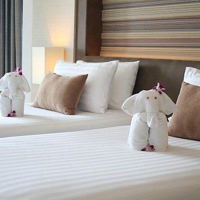 Top Star Suite (87 – 123 м2): великолепные эксклюзивные многокомнатные номера на двух уровнях в заливе Паттайи на самом верху здания или особенно большие по площади семейные многокомнатные номера со специально украшенными детскими комнатами с игровым центром и беспроводным Интернетом величественно возвышаются над заливом Паттайи и островами