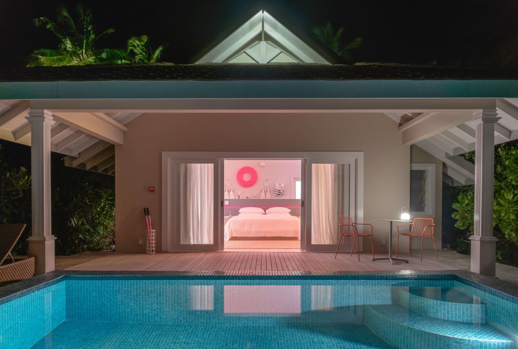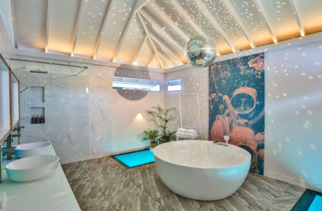 Отель находится в 35—40 минутах полёта на гидросамолете от международного аэропорта Мале.