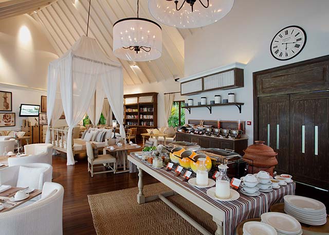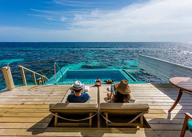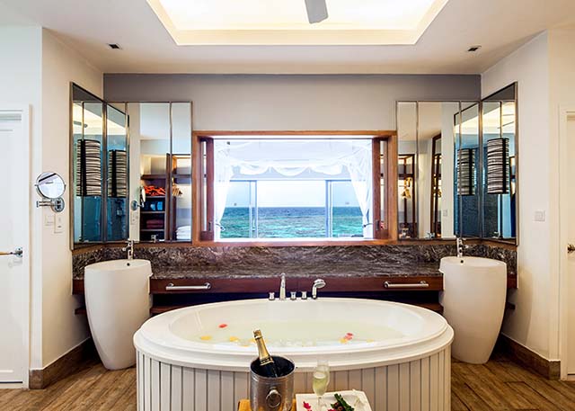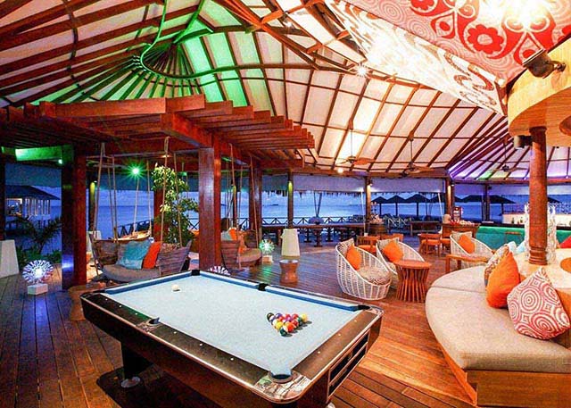 - THE CLUB – клубный лаунж предлагает приватную зону для въезда и выезда, континентальный завтрак с расширенным ассортиментом напитков, отдых у приватного бассейна и пляжа, закуски, алкогольные и безалкогольные напитки премиальных брендов на протяжении всего дня, послеобеденный чай и коктейли. Привилегии The Club доступны за дополнительную плату или бесплатно для гостей проживающих в Club Sunset Overwater Villa with Pool и Club Two Bedroom Beach Pool Villa.