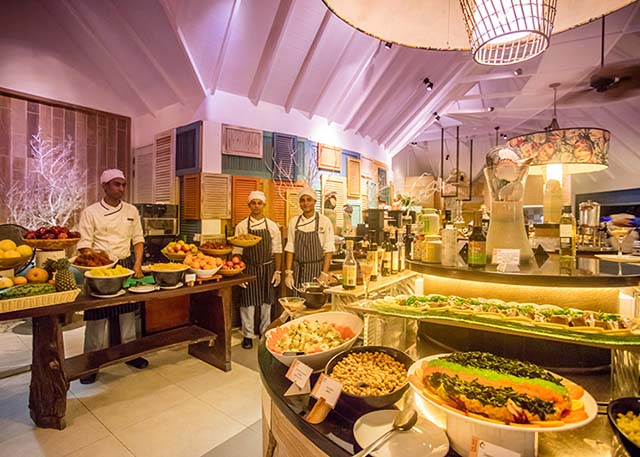 - REEF – основной ресторан предлагает блюда международной и азиатской кухни по системе шведский стол, во время ужина работает теппаньяки-гриль. Ресторан открыт для завтраков, обедов и ужинов.