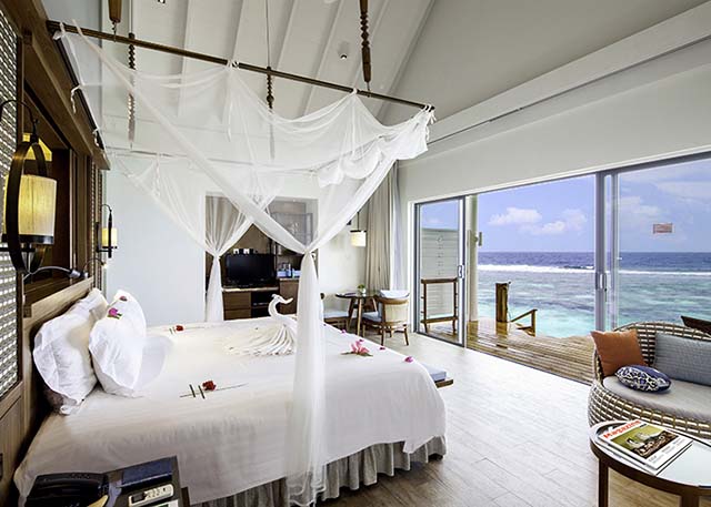 - (14) Reethi Muraka Overwater Villa (ex. Premier Overwater Villa) (Общая площадь 106 кв.м. Площадь виллы 79 кв.м.) Виллы расположены на сваях над водой в западной части острова. К услугам гостей спальня с зоной отдыха и кроватью king с балдахином, ванная комната с душевой кабиной и ванной, меблированная терраса для отдыха со спуском в океан.