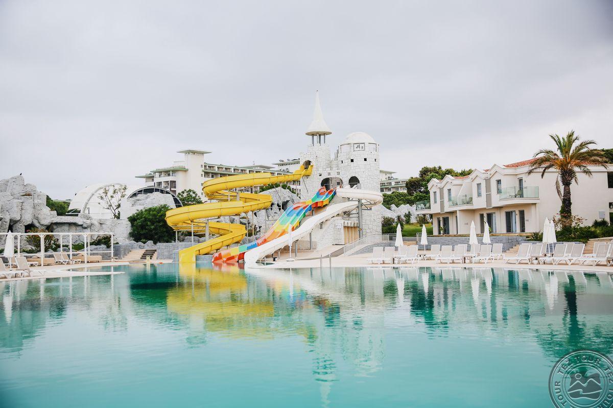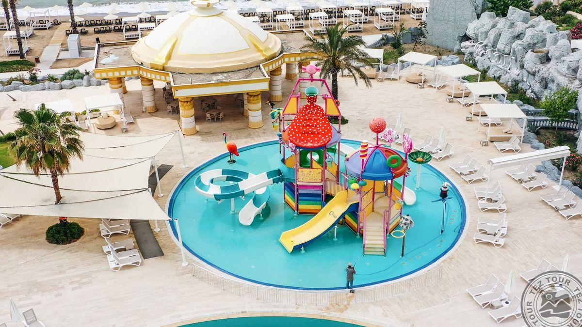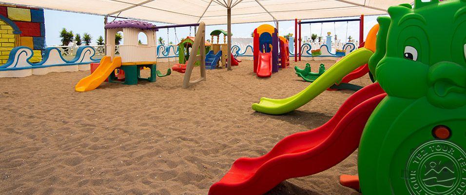 Детям:> детский бассейн: открытый услуги няни: платно детская площадка водные горки: 5 детские клубы: 1 (мини-клуб 2–16 лет) детское меню в ресторане