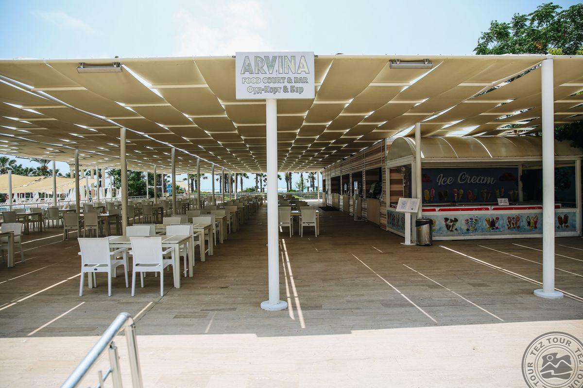 Территория:> рестораны: 1 (основной) бары: 9 крытые бассейны: 1 бассейны: 3 (открытые) спа-центр (платно) конференц-залы: 5 (на 40-180 чел.) у бассейна полотенца: бесплатно мини-маркет (платно) рестораны a la carte: 4 (Нона Аля карт 24 часа, рыбный, мексиканский, барбекю "Галео" – по предварительной резервации, платно) водные горки: 9 Wi-Fi бесплатно (на всей территории отеля) прачечная платно у бассейна зонтики, шезлонги, матрасы: бесплатно парикмахерская (платно)