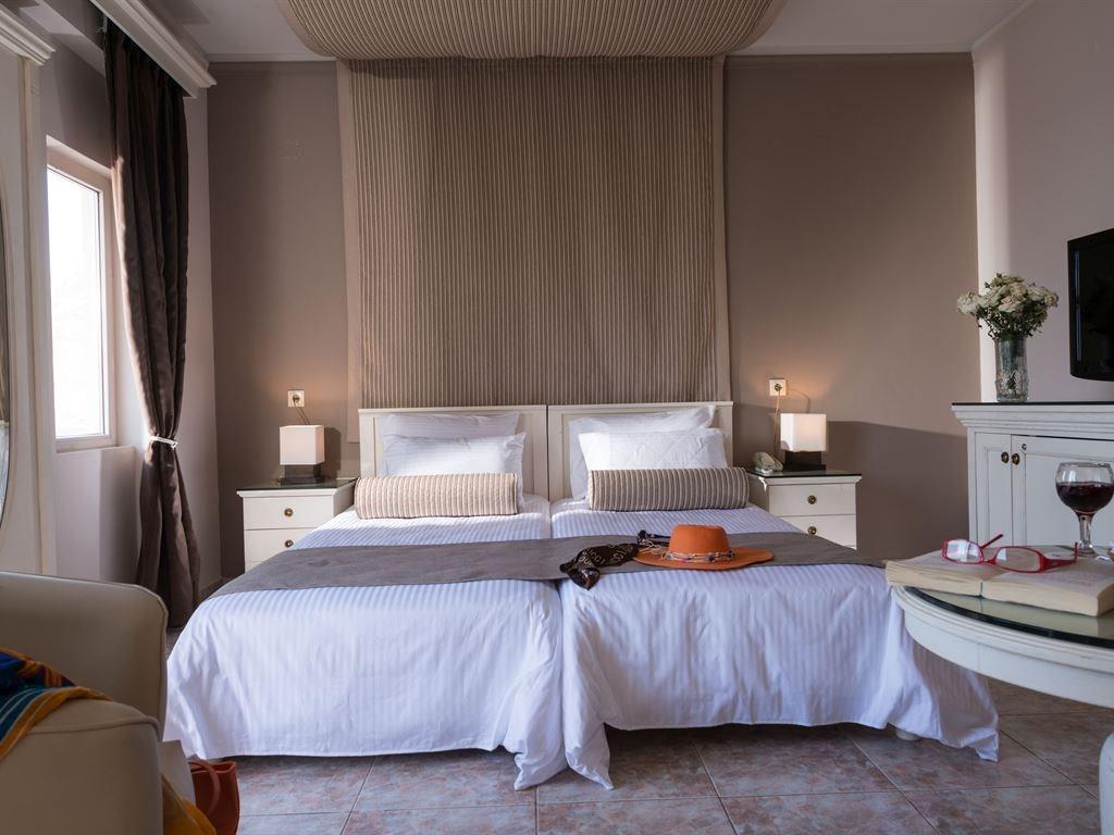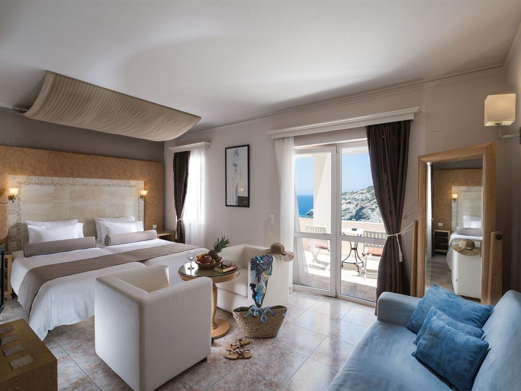 Описание номеров Chc Athina Palace Resort&spa 5*:- ванна/душ- фен- Wi-Fi- балкон/терраса- телефон- кондиционер- спутниковое ТВ- холодильник- банные принадлежности- сейф- ежедневная уборка и смена полотенец- смена постельного белья - 3 раза в неделю