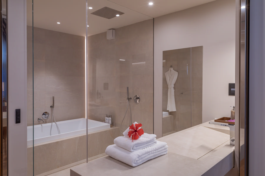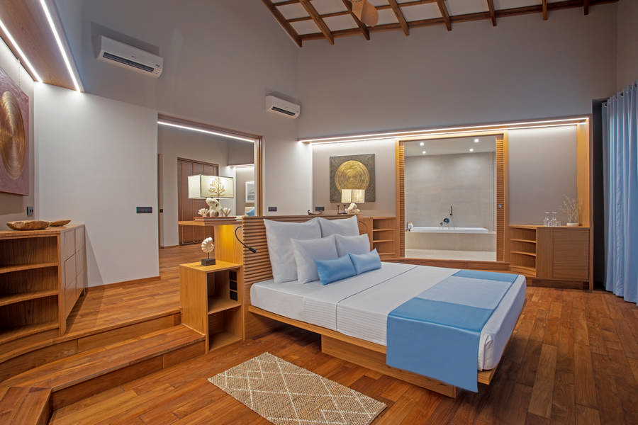 В отеле: 90 номеров, расположенных как на самом острове, так и в лагуне над водой:• 12 Superior Beach Loft (79 кв. м.) двухуровневый номер на пляже, со спальней на верхнем уровне и гостиной зоной и ванной комнатой внизу. Расположены над номерами Beach Bungalow.• 12 Beach Bungalow (65 кв.м) бунгало на пляже, состоит из спальни, ванной комнаты и террасы с выходом на пляж.• 40 Water Bungalow (100 кв.м) бунгало в лагуне на сваях над водой, состоит из спальни с зоной отдыха, ванной комнаты, террасы с видом на океан и спуском в лагуну.• 22 Sunset Water Bungalow with Jacuzzi (100 кв.м) аналогичны Water Bungalow, дополнительно имеют джакузи и вид на закат.• 4 Water Suite with Pool (208 кв.м) просторный люкс над водой, состоящий из спальни с зоной отдыха, ванной комнаты с видом на океан, террасы с собственным бассейном и спуском в лагуну.