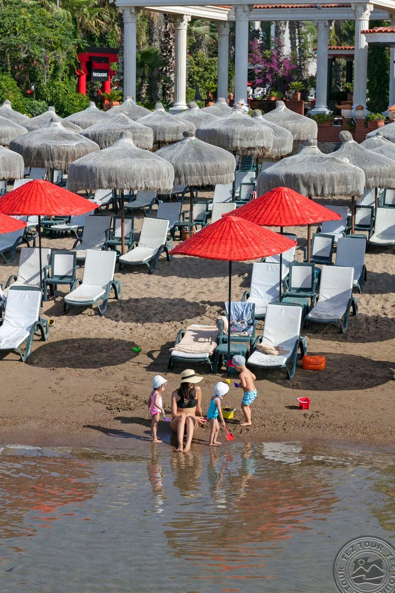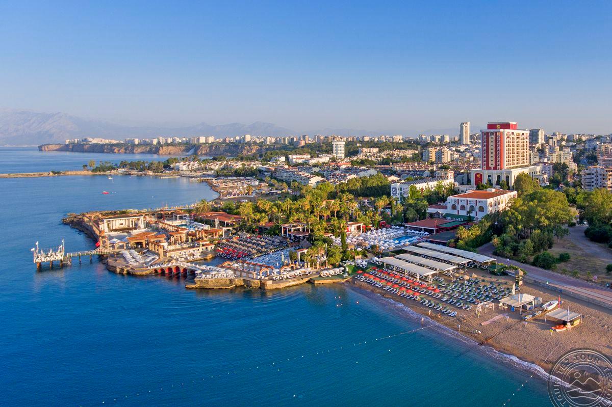 в 9 км от аэропорта, в 12 км от центра г. Анталья, на берегу моря.