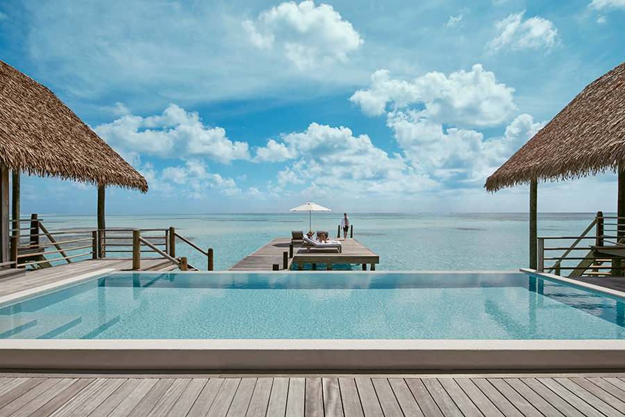 4 One-Bedroom Water Villas with Pool (125 кв.м.) состоят из спальни на подиуме, просторной гостиной, веранды с душем на открытом воздухе, ванной комнаты и гостевого санузла.