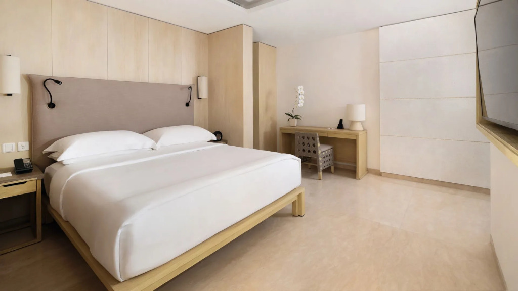 Номер уютно обставлен и оснащён необходимым, чтобы отдохнуть после долгого и насыщенного дня. Имеются душ, телевизор, мини-бар, халат и тапочки. Оснащение зависит от выбранной категории номера.