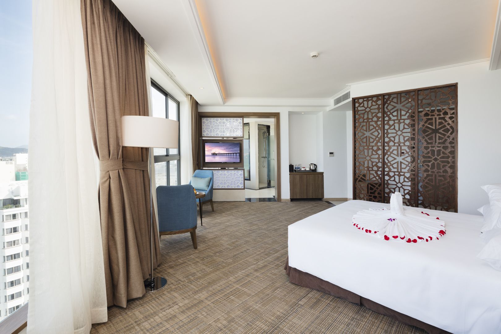 Comodo Nha Trang — это прекрасный отель, расположенный прямо на берегу одного из самых нетронутых пляжей Вьетнама. Отель находится в самом центре города, на улице Чанфу, и обещает подарить незабываемые впечатления благодаря разнообразным удобствам, удовлетворяющим все ваши потребности. Отель предлагает 241 просторный номер с собственной ванной комнатой, удобными кроватями, бесплатным доступом в интернет и видом на пляж. В распоряжении гостей — большой инфинити-бассейн с видом на океан, роскошный спа-салон с эффективными процедурами, а также высококлассные рестораны и бары.