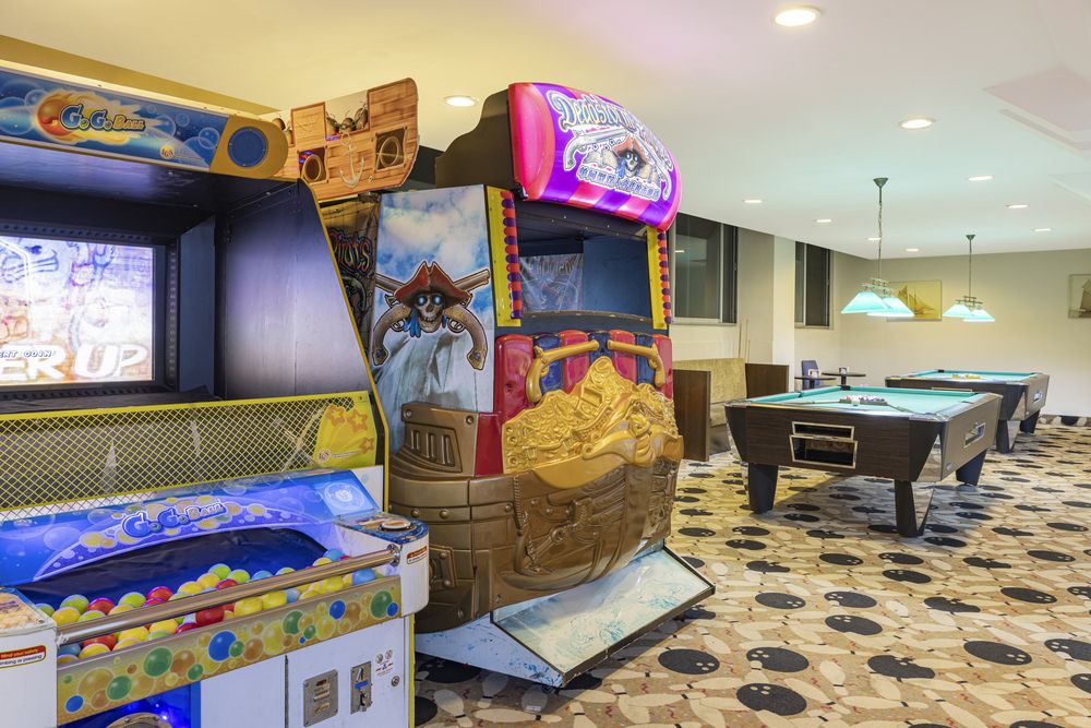 Тренажерный зал, Теннисный корт: (уроки и освещение - платно), Аэробика, Водная аэробика, Стрельба из лука, Пляжный волейбол, Пляжный футбол, Бильярд: (платно), Боулинг: (платно), Мини-футбол, Настольный теннис, Водные виды спорта: (платно), Йога