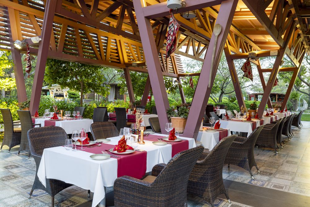 - РестораныLe Buffet - шведский столDa Vinci (с 19:00 до 22:00) - a la carte, итальянская кухняAsianа (с 19:00 до 22:00) - a la carte, дальневосточная кухняVinario (с 19:00 до 22:00) - a la carte, стейк и грильDafne (с 19:00 до 22:00) - a la carte, турецкая кухняPoseidon (с 19:00 до 22:00) - a la carte, морепродукты и рыбаBbq (с 19:00 до 22:00) - a la carte, барбекюNeyzen (с 19:00 до 22:00) - a la carte, анталийская кухняВнимание! Посещение ресторанов a la carte - платно, в определенные дни недели, по предварительной резервации